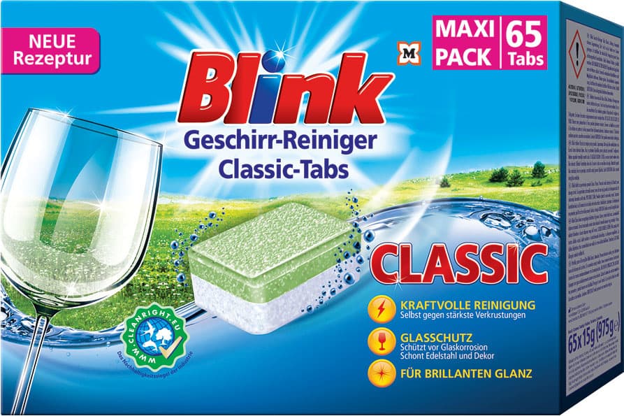 Müller EigenmarkeBlink SpülmaschinenreinIgertabs in wasserlöslicher FolieCHF 2.25 / 3 Stk.CHF 0.75 / 1 Stk.