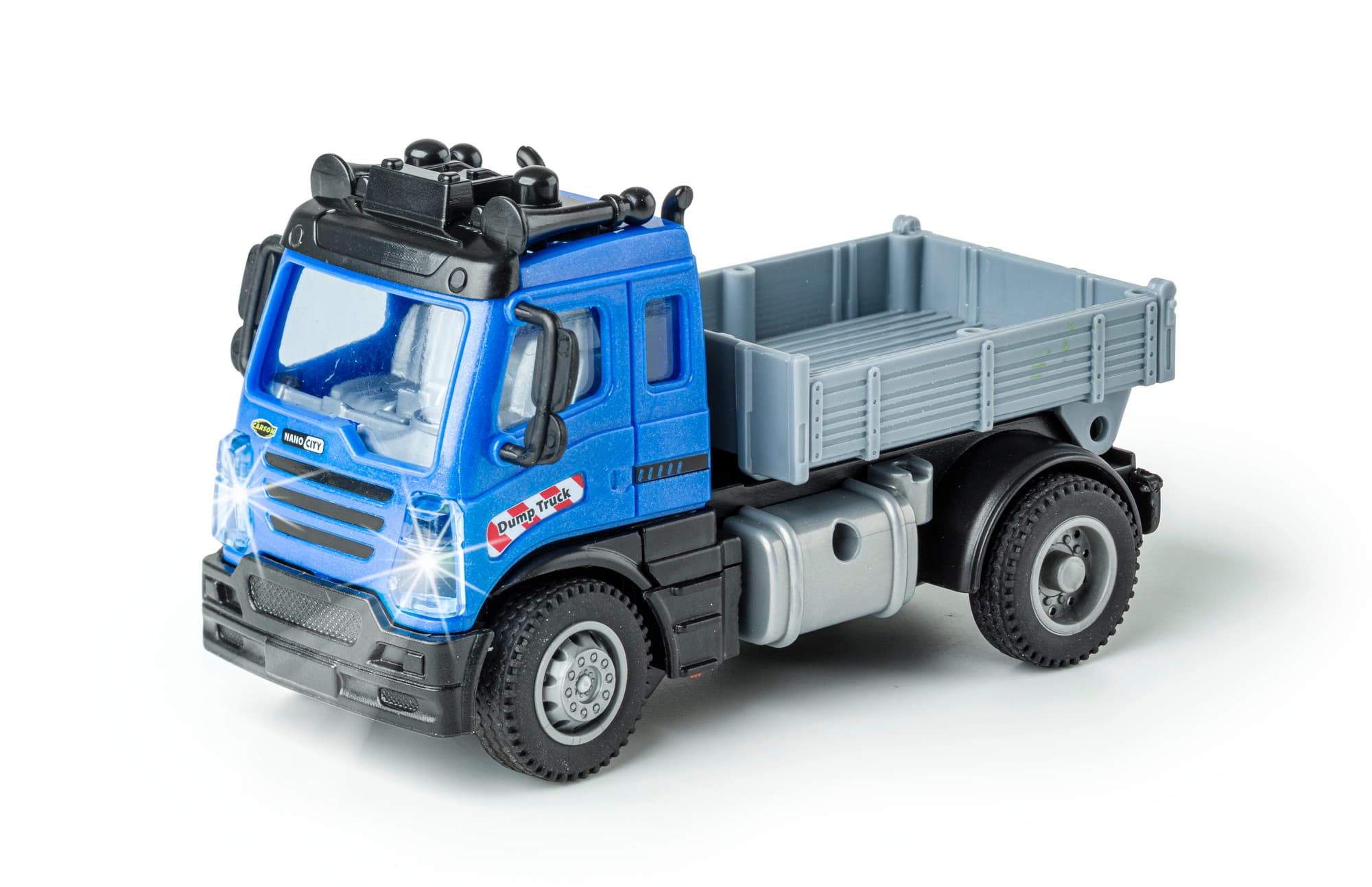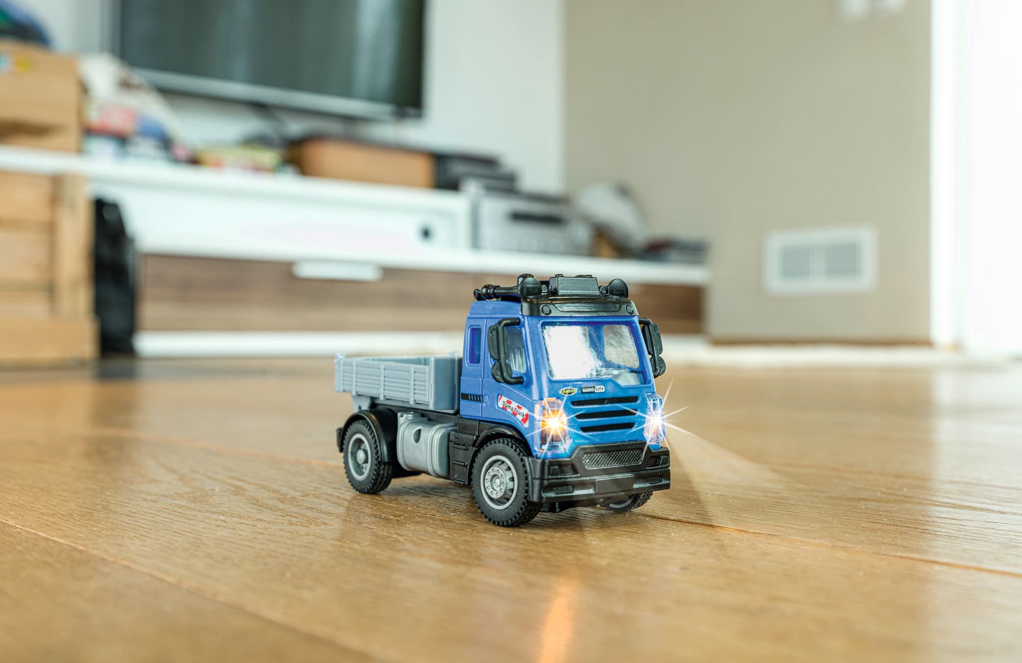 Tauche ein in die Welt der flinken Nano City Racer! Der ferngesteuerte Nano City Kipper ist alles andere als gewöhnlich, und überzeugt als ultimativer Schreibtisch-Racer und RC-Fun-Artikel to go. Alle Nano City Artikel sind inklusive 2,4 GHz Fernsteueranlage, die es mittels einer speziellen Funktion erlaubt bis zu 50 Fahrzeuge gleichzeitig zu steuern. Ausgestattet mit 1x Li-Ion Fahrakku (3,7V/500 mAh) der über ein beiliegendes USB-Ladegerät geladen werden kann, werden ganze 40 Minuten Fahrspaß ermöglicht. Die LED-Beleuchtung des Wagens ist ein echtes Highlight der Miniatur und macht das Müllauto auf jeden Fall auch bei Dunkelheit zum Blickfang.