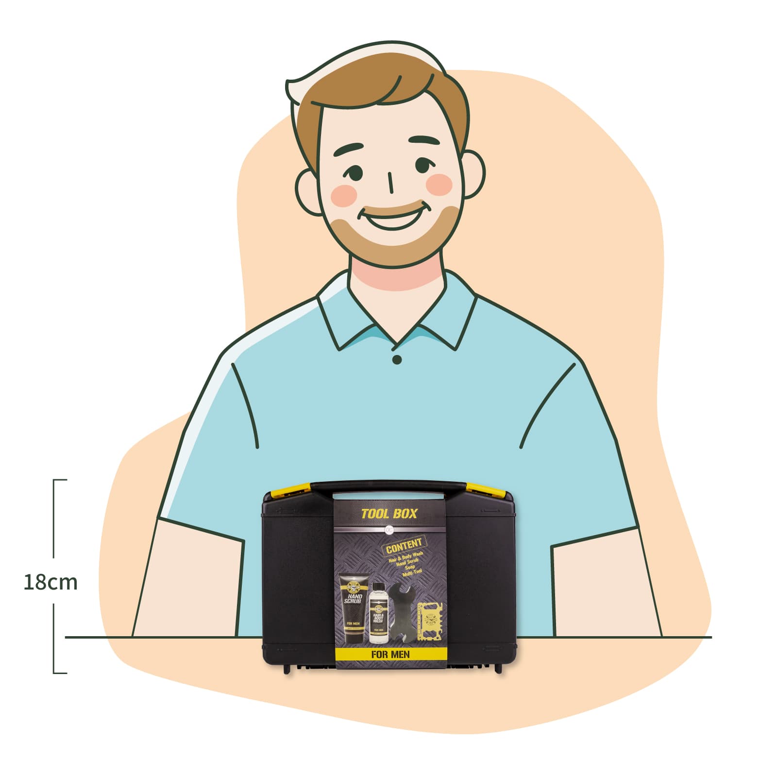 Accentra Badeset Bath& Body Tools in kleinem Werkzeug-Koffer, Duft: Musk, Farbe: schwarz/gelb/grau