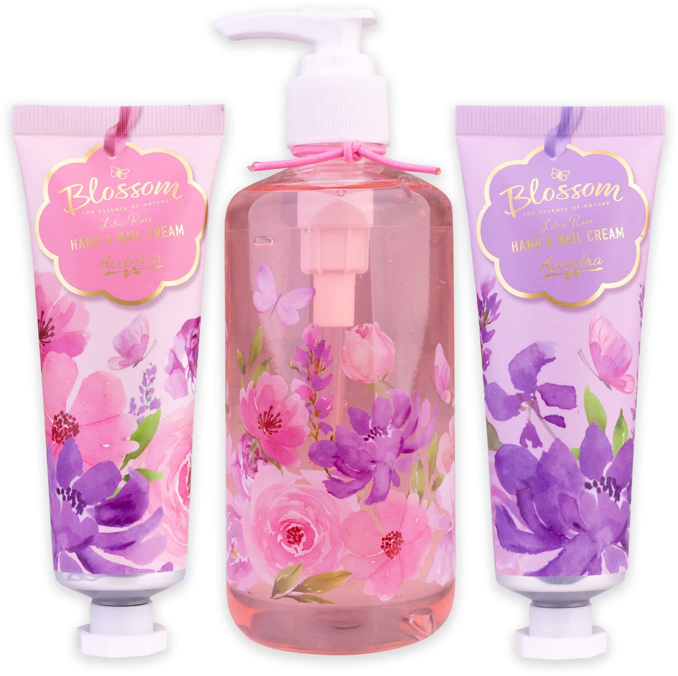 | Inhaltsstoffe | Hand Soap / Handseife: Aqua (Water), Cocamidopropyl Betaine, Disodium Laureth Sulfosuccinate, PEG-120 Methyl Glucose Dioleate, Cocamide Methyl MEA, Sodium Chloride, Phenoxyethanol, Citric Acid, Benzyl Alcohol, Parfum (Fragrance), Geraniol, Glycerin, Sodium Benzoate, Disodium EDTA, Benzoic Acid, Sorbic Acid, CI 14700 (FD&C Red No. 4), CI 17200 (D&C Red No. 33) Hand & Nail Cream / Hand- & Nagelcreme: Aqua (Water), Cetearyl Alcohol, Ethylhexyl Palmitate, Palmitic Acid, Stearic Acid, Glycerin, PEG-100 Stearate, Glyceryl Stearate, Phenoxyethanol, Carbomer, Benzyl Alcohol, Butyrospermum Parkii (Shea) Butter, Isopropyl Myristate, Polysorbate 60, Parfum (Fragrance), Hydroxycitronellal, Geraniol, Linalool, Sodium Hydroxide, Disodium EDTA, Benzoic Acid, Sorbic Acid |