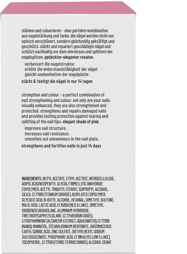 Stärkende Nagelpflege. Unser nail express hardnener stärkt brüchige und weiche Nägel, verbessert die Nagelstruktur und gleicht Unebenheiten aus. Er fördert die Widerstandsfähigkeit der Nägel innerhalb von 2 Wochen und sorgt für eine glatte, gleichmäßige Oberfläche. Mit einem transparent glänzenden finish.