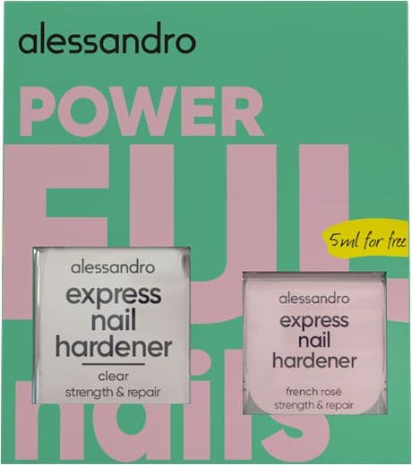 Das powerful nails Geschenkset von ALESSANDRO ist eine Nagelpflege, die den Nägeln ein glänzendes Finish verleiht. Es kombiniert Farbe mit einer speziellen Formel für ein gepflegtes Erscheinungsbild der Nägel.