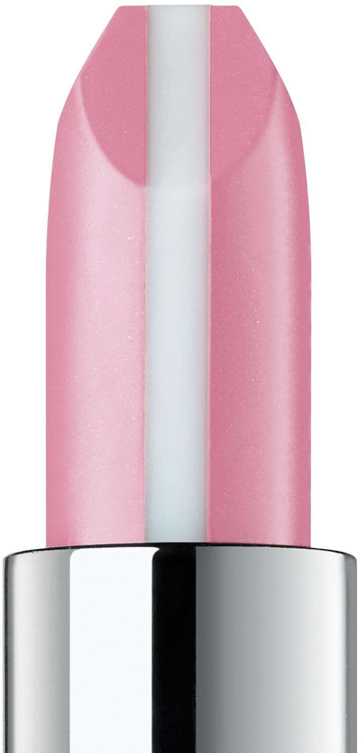 Dieser Lippenstift zeichnet sich durch seine spezielle Zusammensetzung aus. Während die äußeren Bereiche für den Farbton sorgen, enthält der mittlere, durchsichtige Streifen ausgewählte Inhaltsstoffe. Beim Auftragen verbinden sich alle drei Streifen miteinander. Das Resultat ist ein ebenmäßiger Farbauftrag mit einem zarten Glanz.