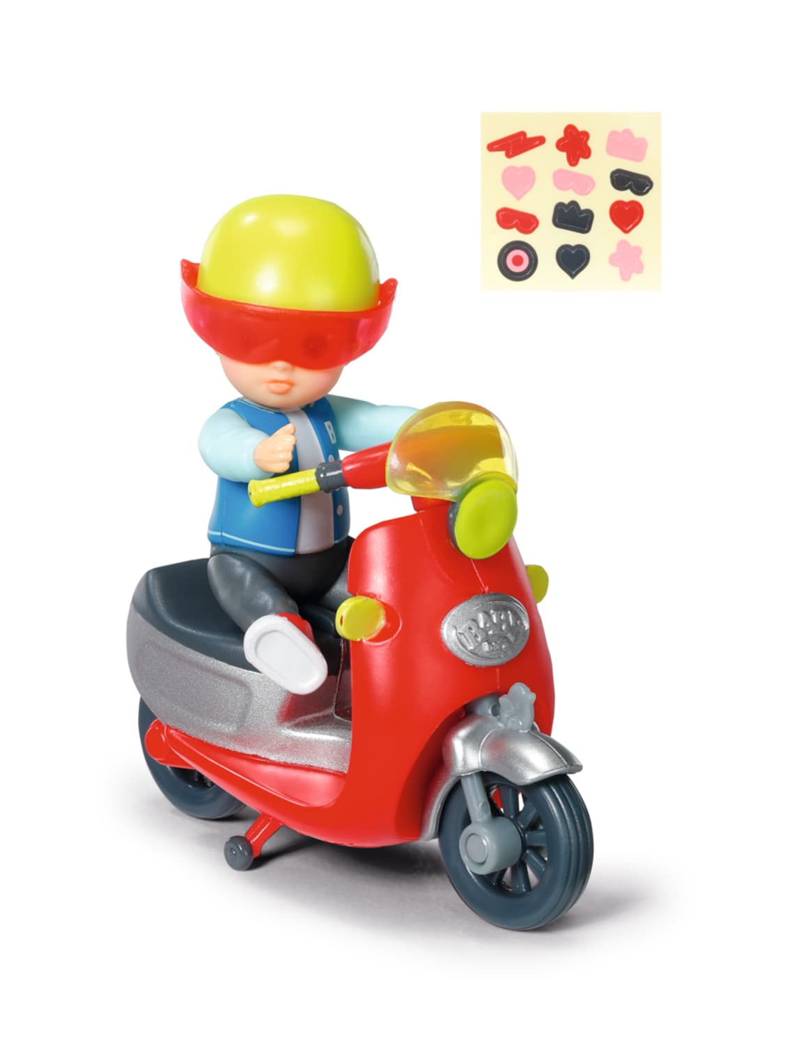 | Besonderheiten | SPIELSET MIT BABY BORN MINI PÜPPCHEN UND ROLLER: Aus der Bahn! Hier düst der kleine Simon auf seinem feuerroten Scooter um die Ecke. |