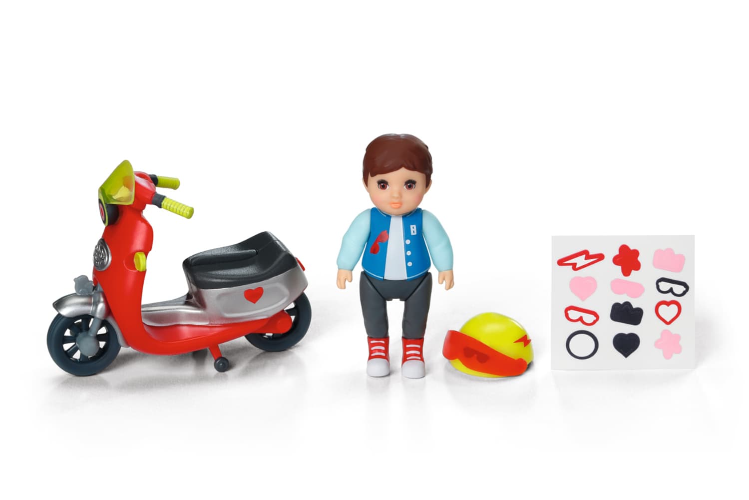 Aus der Bahn! Hier düst der kleine Simon auf seinem feuerroten Scooter um die Ecke. Sogar der Helm passt perfekt zum coolen City-Look der Mini-Puppe.• 7 cm BABY born Minis Puppe Simon• Scooter + Helm