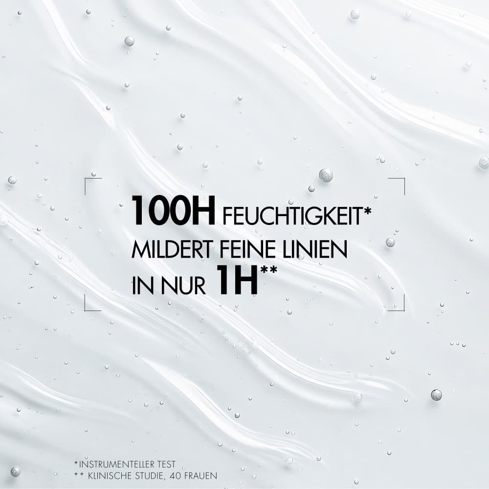 Inspiriert von der feuchtigkeitsspendenden Wirkung von Elektrolyten im Fitnessbereich, ist das Aquasource+ Electrolyte Dewy Gel 100 Stunden eine leichte Gel-Feuchtigkeitspflege. Es wurde entwickelt, um nach einer einzigen Anwendung bis zu 100H lang Feuchtigkeit zu spenden¹. Angetrieben von 7000 mg Elektrolyte Mix, dem ersten Fitness-Ergänzungsmittel von Biotherm für die Feuchtigkeitsversorgung und 1000 mg Hyalu B3, hilft diese Formel, feine Linien in nur 1 Stunde sichtbar zu mildern² und unterstützt die Feuchtigkeitsreserven der Haut langfristig. Die Elektrolyte, die 1.000-mal kleiner sind als Hyaluronsäure, wirken als Wasserpropeller damit die Formel schnell in die Haut aufgenommen wird und sofort eine durchfeuchtete Haut verleiht. Instrumentelle, klinische Tests und Verbrauchertests zeigen sichtbare Verbesserungen der Hauttextur, der Geschmeidigkeit und eine 100 Stunden anhaltende Feuchtigkeitsversorgung ab der ersten Anwendung.