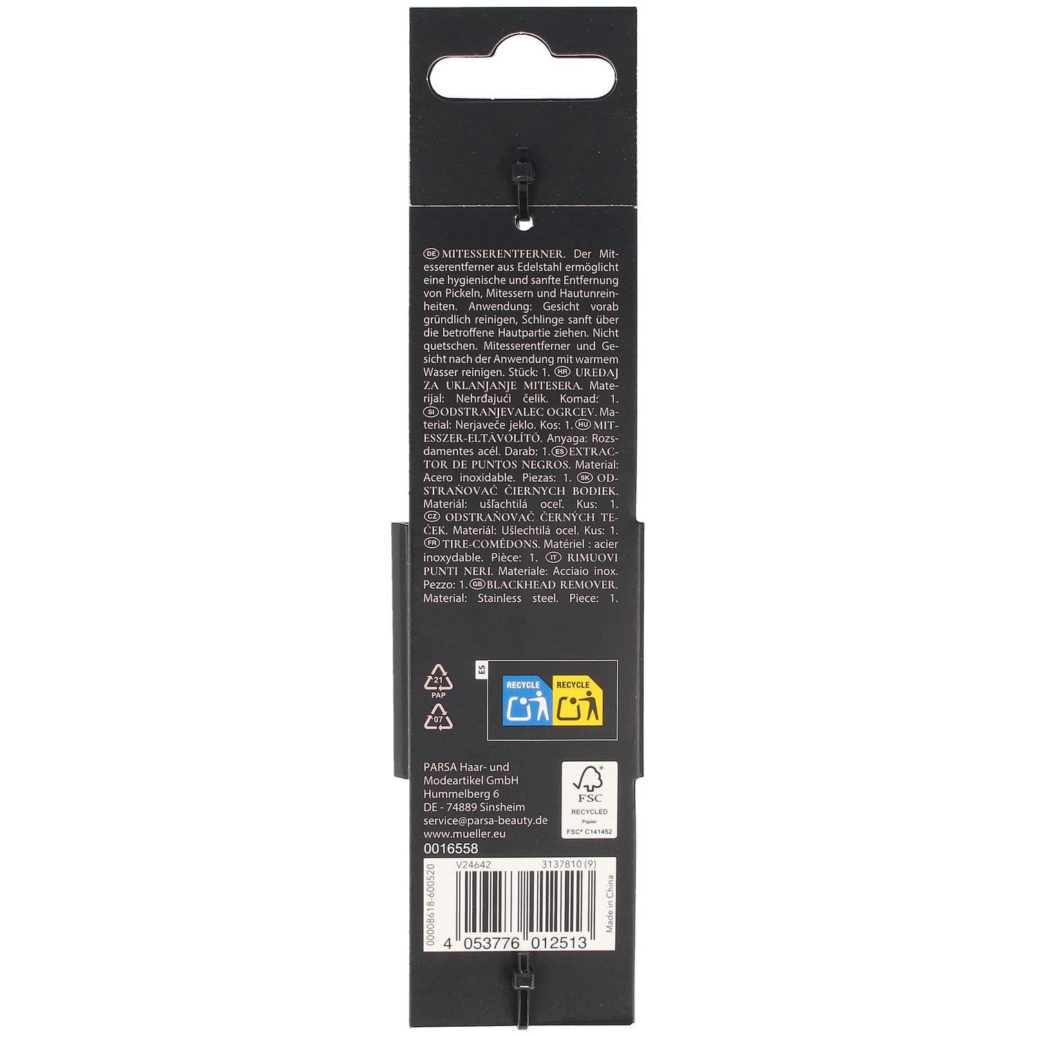 | Anwendungshinweis | Gesicht vorab gründlich reinigen, Schlinge sanft über die betroffene Hautpartie ziehen. Nicht quetschen. Mitesserentferner und Gesicht nach der Anwendung mit warmem Wasser reinigen. |
