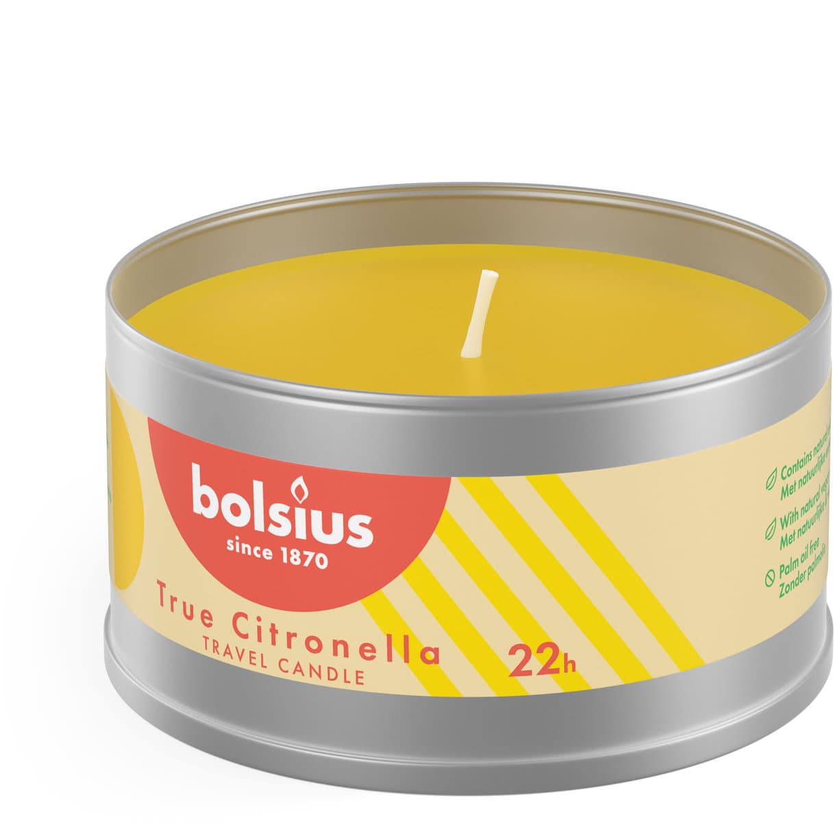 Genießen Sie stilvolle und sorglose Sommerabende im Freien! Die Bolsius-Citronella-Kerzen für den Außenbereich enthalten natürliche Extrakte und haben einen herrlich frischen Duft. Die Kerze brennt bis zu 22 Stunden. Gefertigt mit ScentIntense-Technologie garantieren wir eine überlegene Duftfreisetzung.