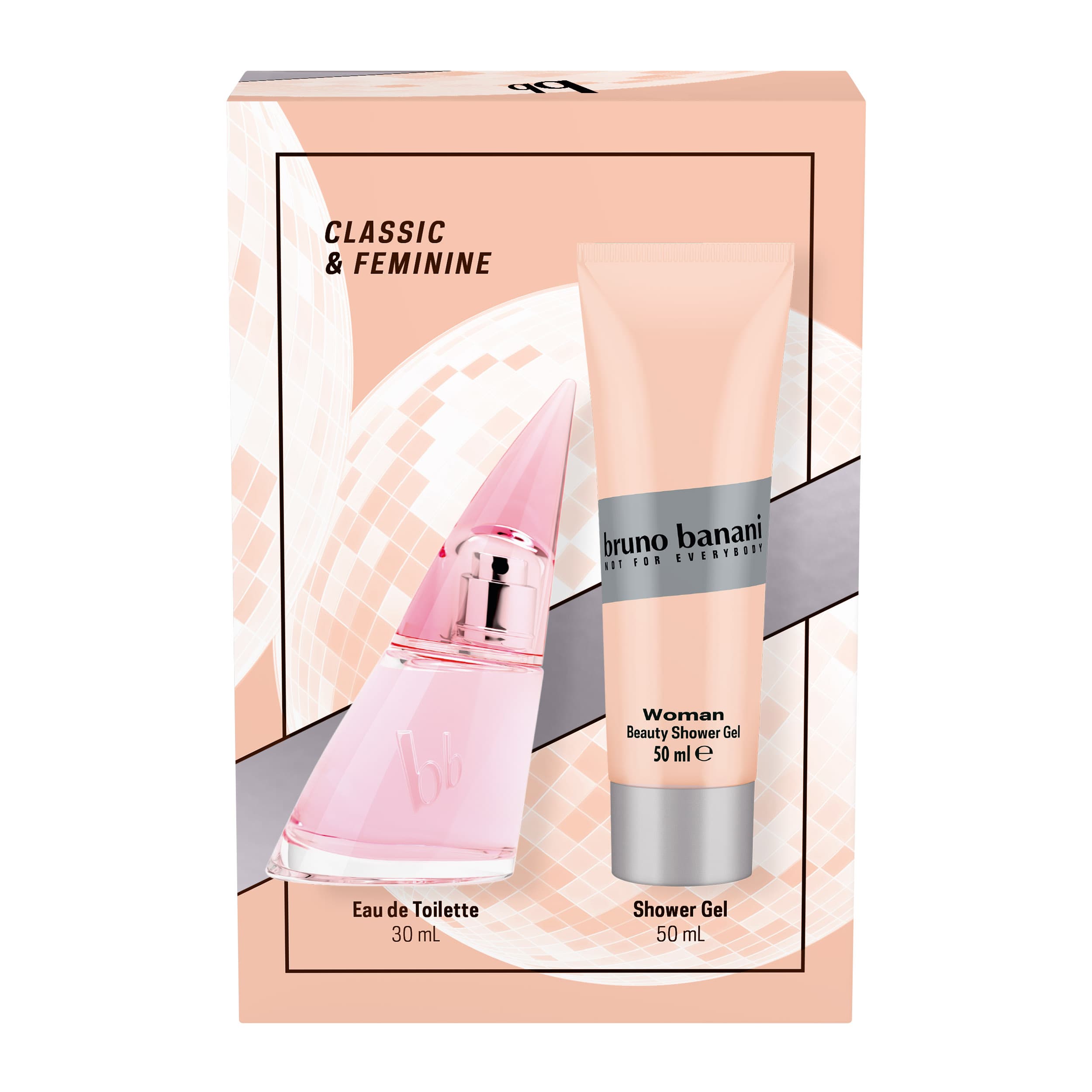 Das bruno banani Woman Geschenkset mit einem Eau de Toilette für Damen und einem passenden Duschgel bietet einen erfrischenden Duft für Frauen, der mit Gegensätzen spielt und pure Lebensfreude zum Ausdruck bringt. Der unwiderstehlich verführerische Duft kombiniert Noten von fruchtig süßer Orange mit belebendem Efeu und betörender Seerose. Lebhafte Pfirsichnoten harmonieren mit einem blumigen Bouquet aus extravaganter Freesie und zartem Maiglöckchen und werden von sinnlichen Aromen von Vanille und weißem Moschus unterstrichen. Das Duschgel, das als Ergänzung des Eau de Toilette-Sprays entwickelt wurde, reinigt die Haut und verleiht ihr einen wunderschönen Duft. Das bruno banani Woman Geschenkset ist das perfekte Geschenk für selbstsichere Frauen, die sanfte Verführungskraft mit intensiver Leidenschaft und Verspieltheit kombinieren. Das Geschenkset ist in einer 100% plastikfreien Faltschachtel enthalten. Dieses Geschenkset enthält ein Eau de Toilette 30ml, sowie ein Duschgel 50ml.