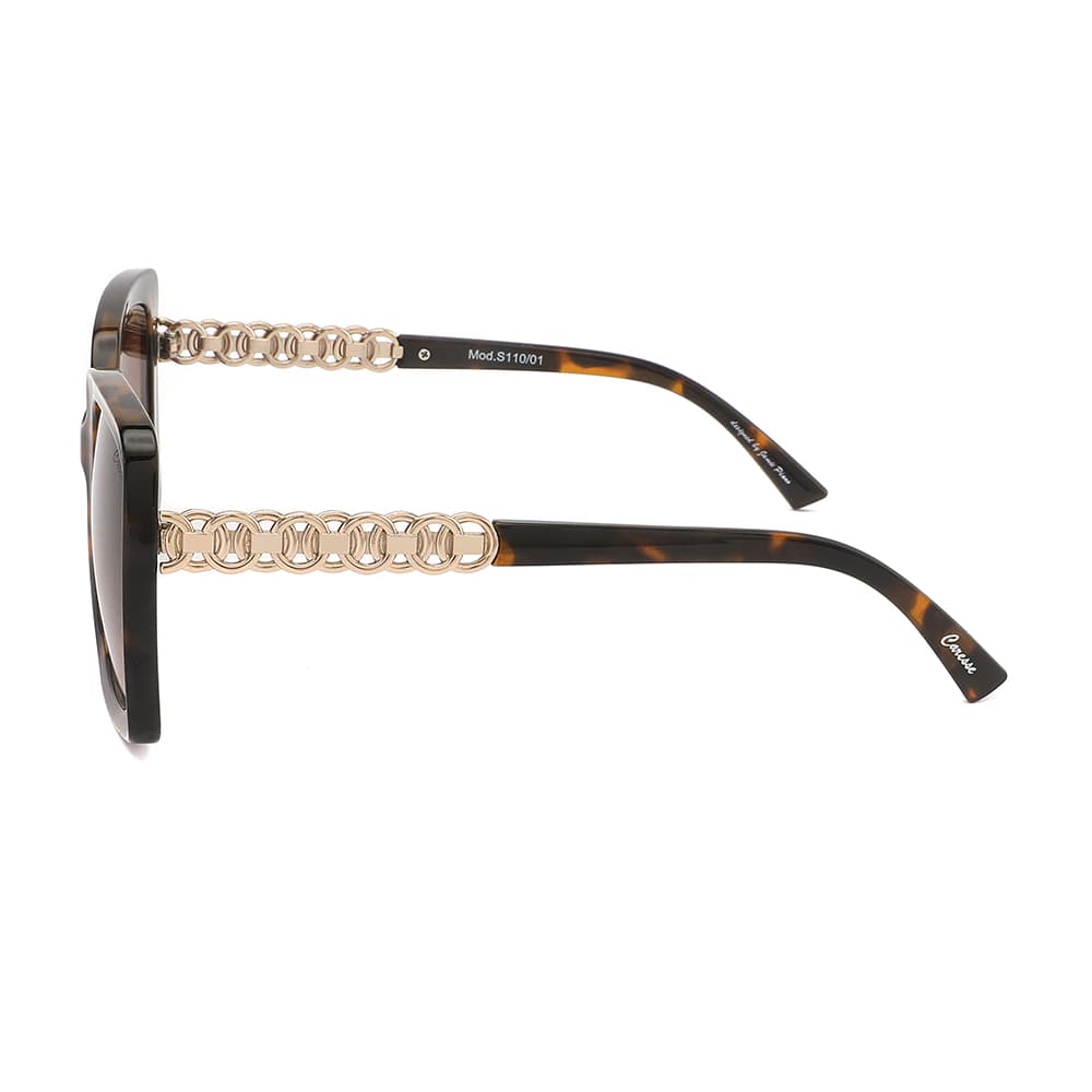 Caresse Brillenmode Sonnenbrille Demibrown mit goldenen Bügeldetails.