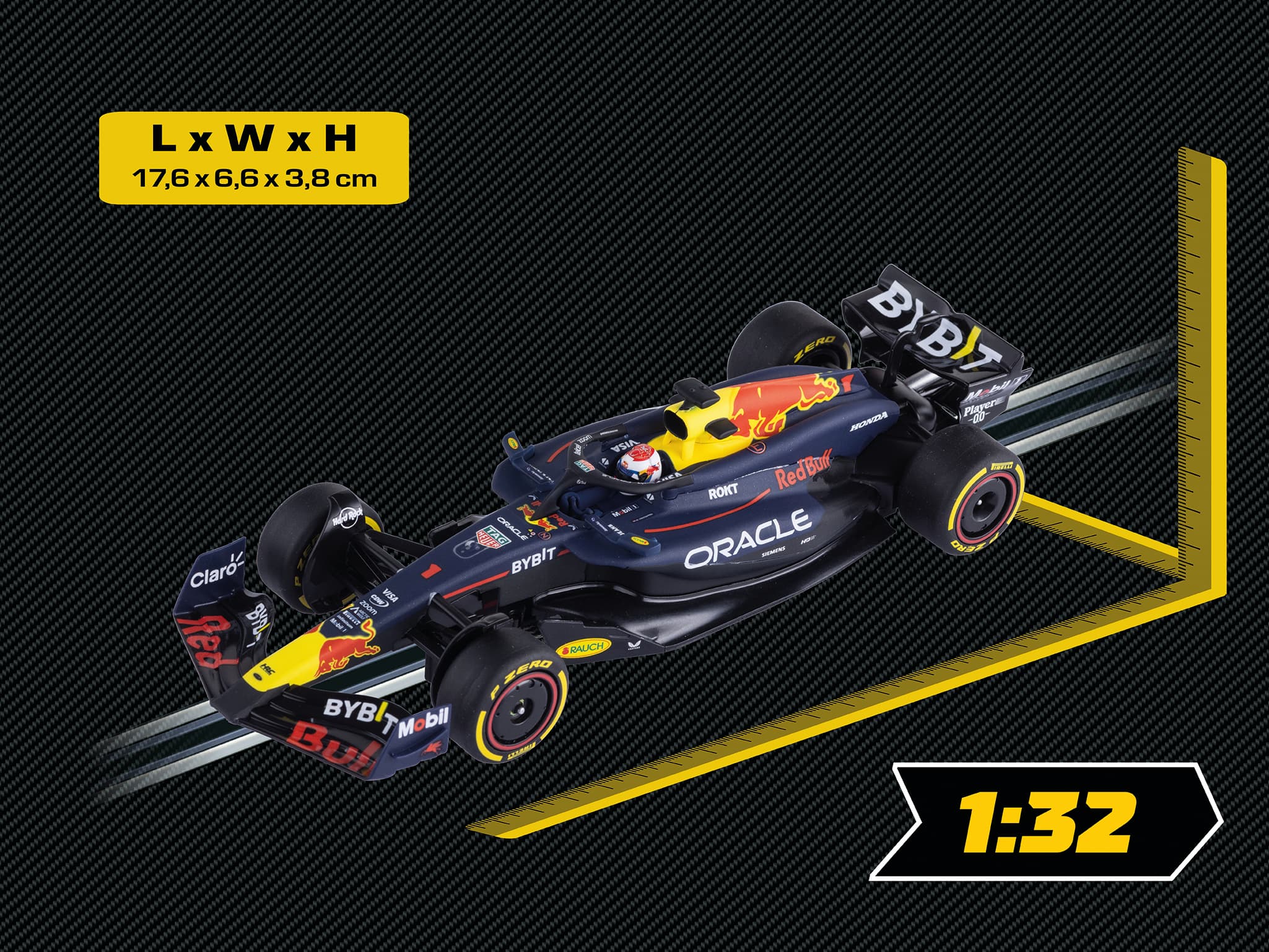 Erlebe die Faszination der Königsklasse des Motorsports mit dem Carrera Red Bull Racing RB20 „M. Verstappen, No.1“. Dieses offiziell lizenzierte Slotcar im Maßstab 1:32 bringt das Design und die Performance des echten RB20 aus der Formel-1-Saison 2024 direkt auf deine Rennbahn.