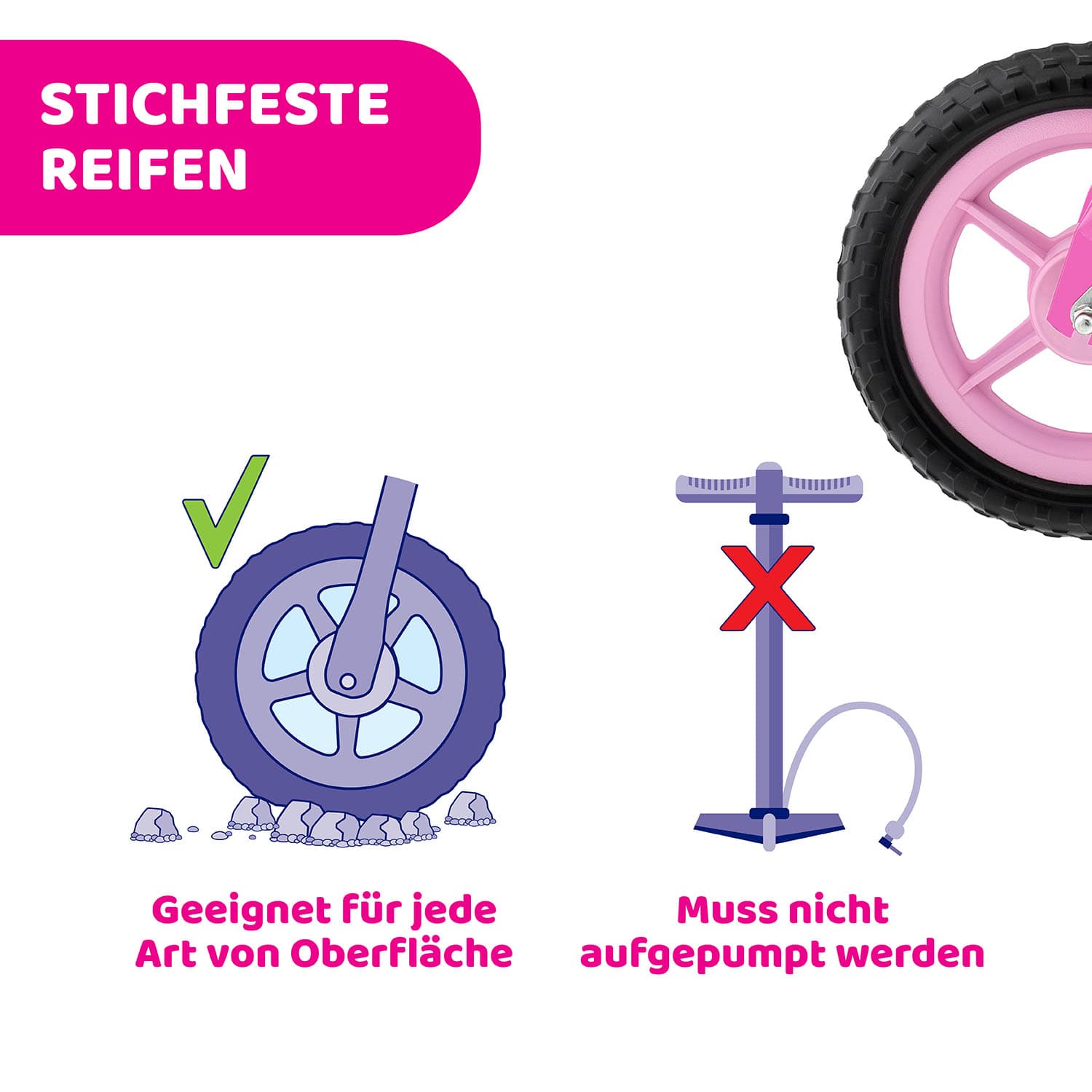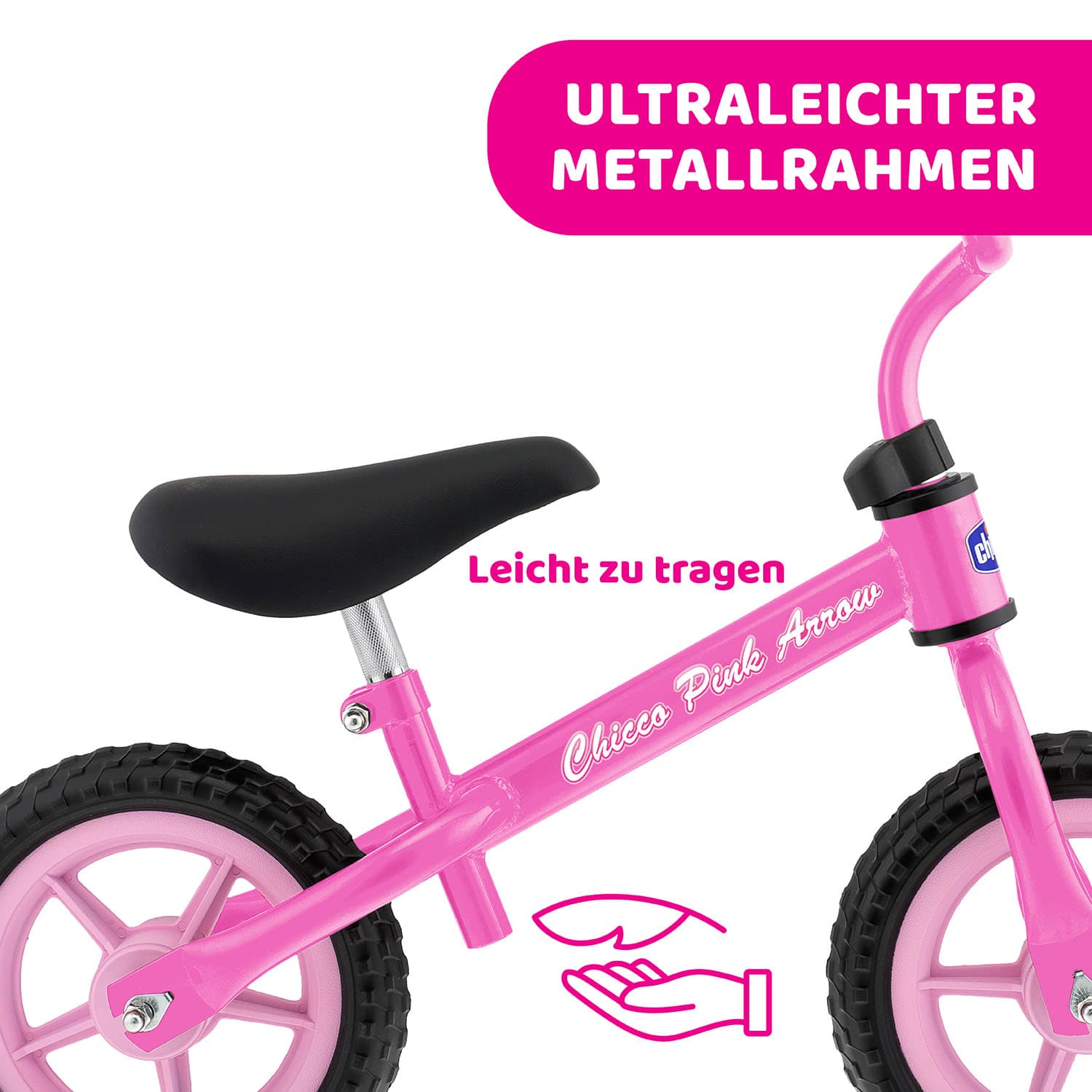 Das erste Kinderfahrrad, das hilft, die nötige Balance auf zwei Rädern zu entwickeln, um später ein echtes Fahrrad mit Pedalen fahren zu können.Hergestellt aus ultraleichtem Metall,Verstellbarer Lenker und Sitz für ein wachsendes Kind,Nutzungsdauer: 2 bis 5 Jahre (Höchstgewicht: 25 kg).