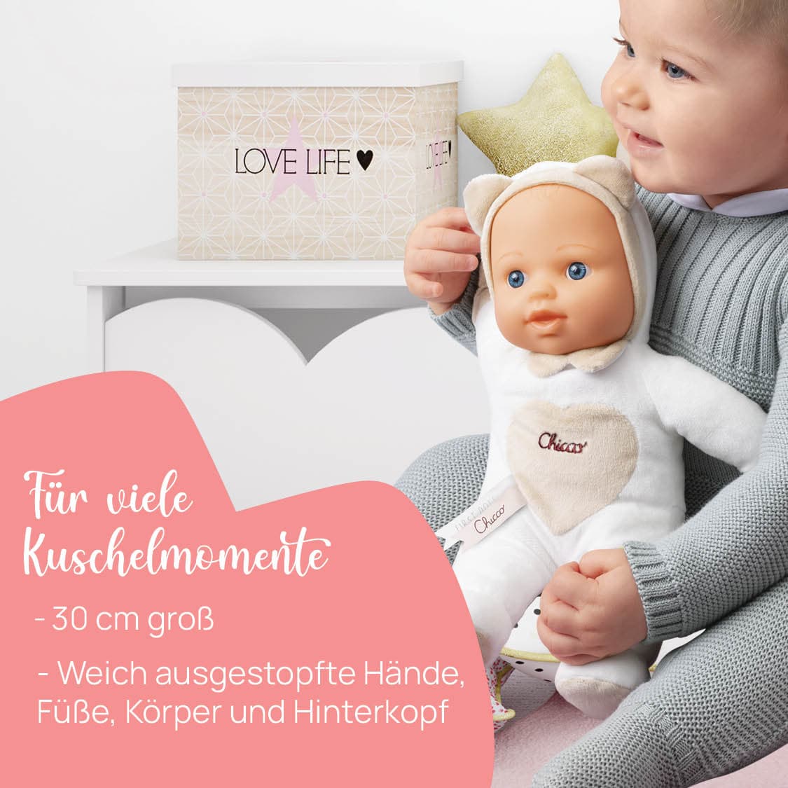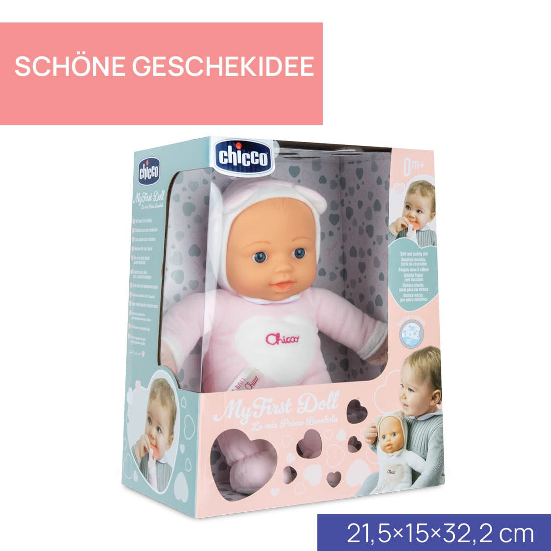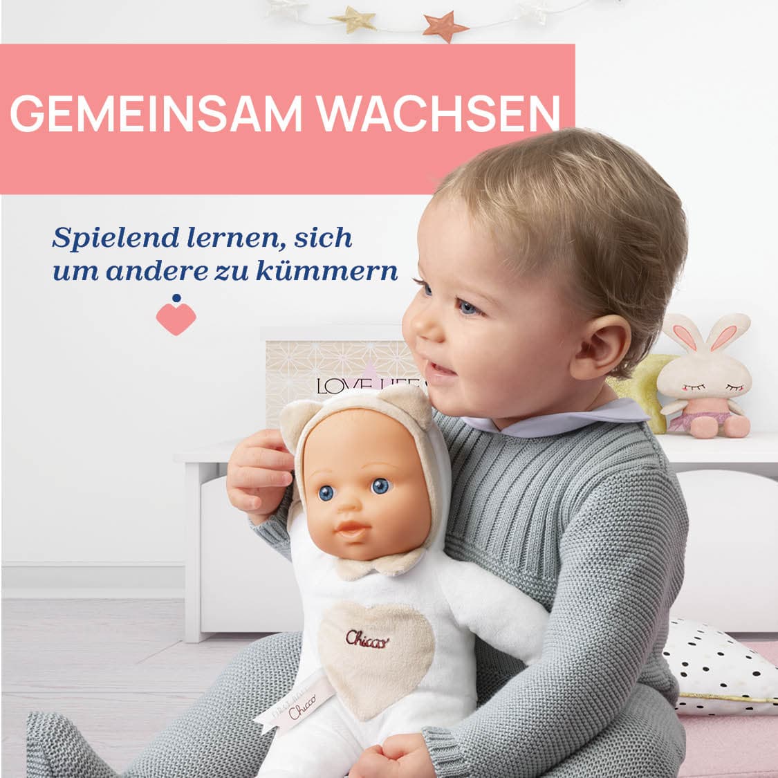 My First Doll – Puppe: Die perfekte Kuschelpuppe für die ersten Umarmungen • Superweiche Puppe: In sanftem Velours mit zarter Füllung, federleicht und ideal für Babys erste Kuschelmomente. • Harmonisches Design: Entworfen in Italien mit weichen Pastellfarben und einem liebevoll gestalteten Gesicht aus weichem Kunststoff für einen realistischen, süßen Ausdruck. • Herzförmiger Beißring: Mit strukturierten Reliefs, die empfindliches Zahnfleisch beruhigen. • Besonders hygienisch: Waschmaschinenfest für eine saubere und sichere Nutzung.