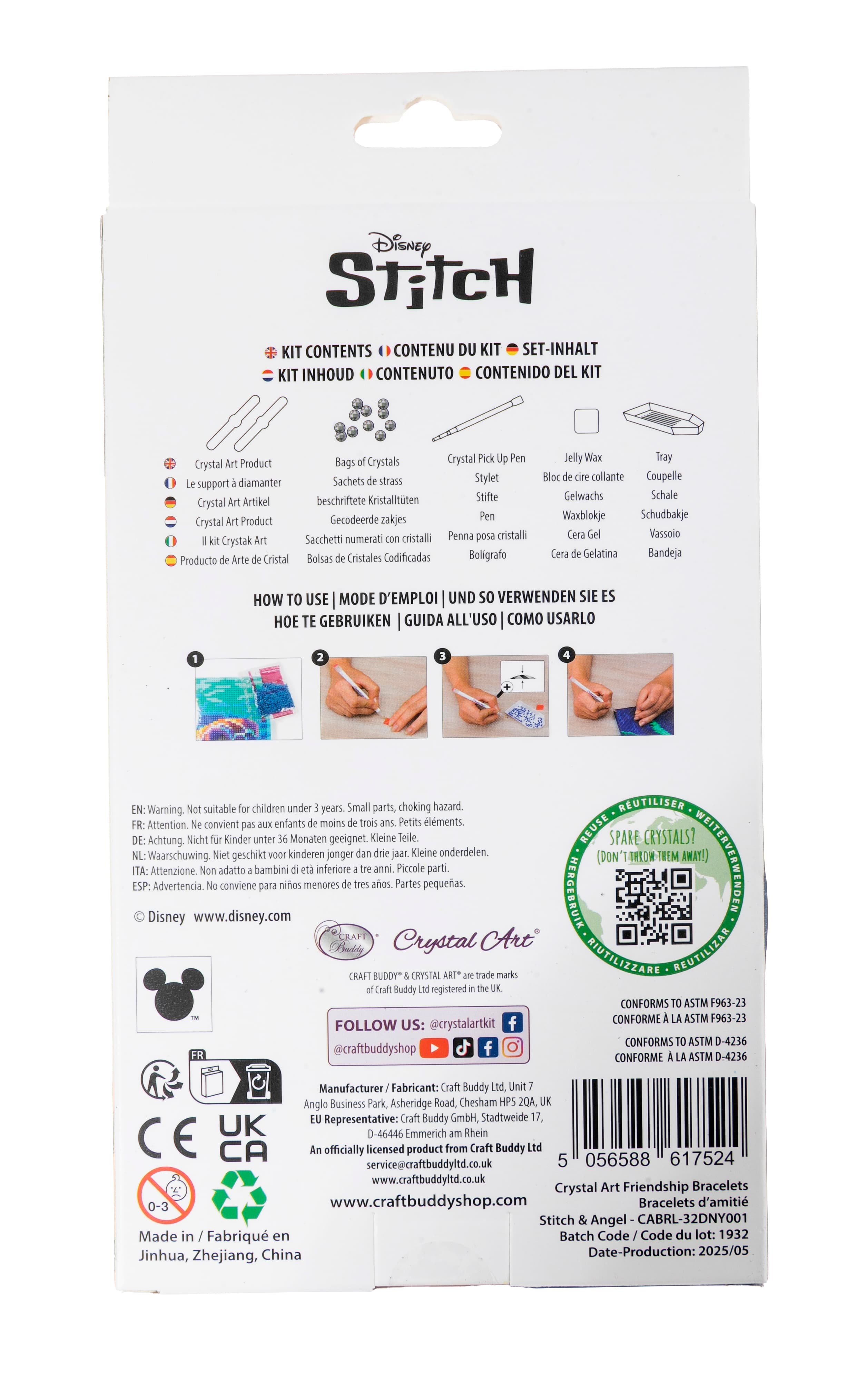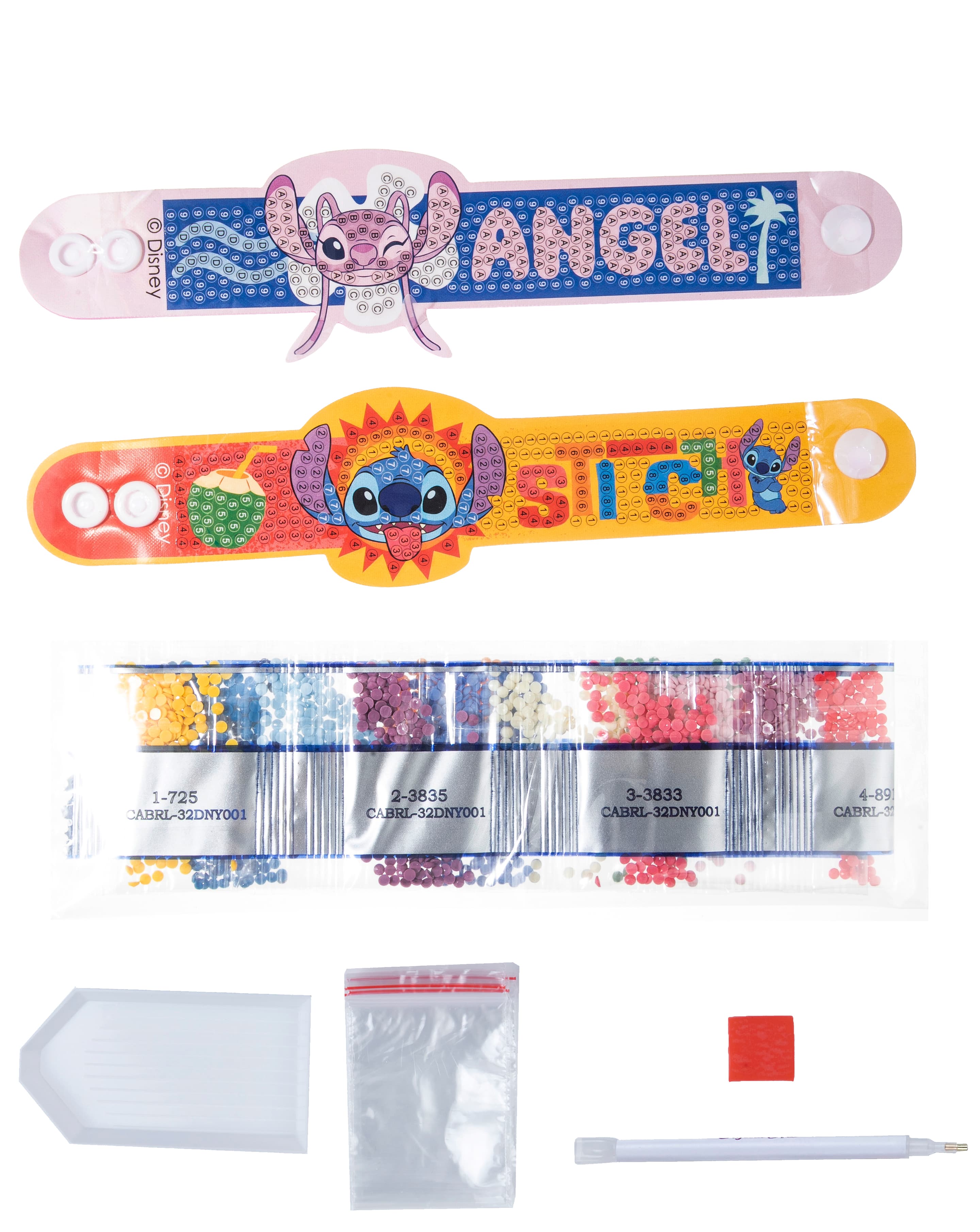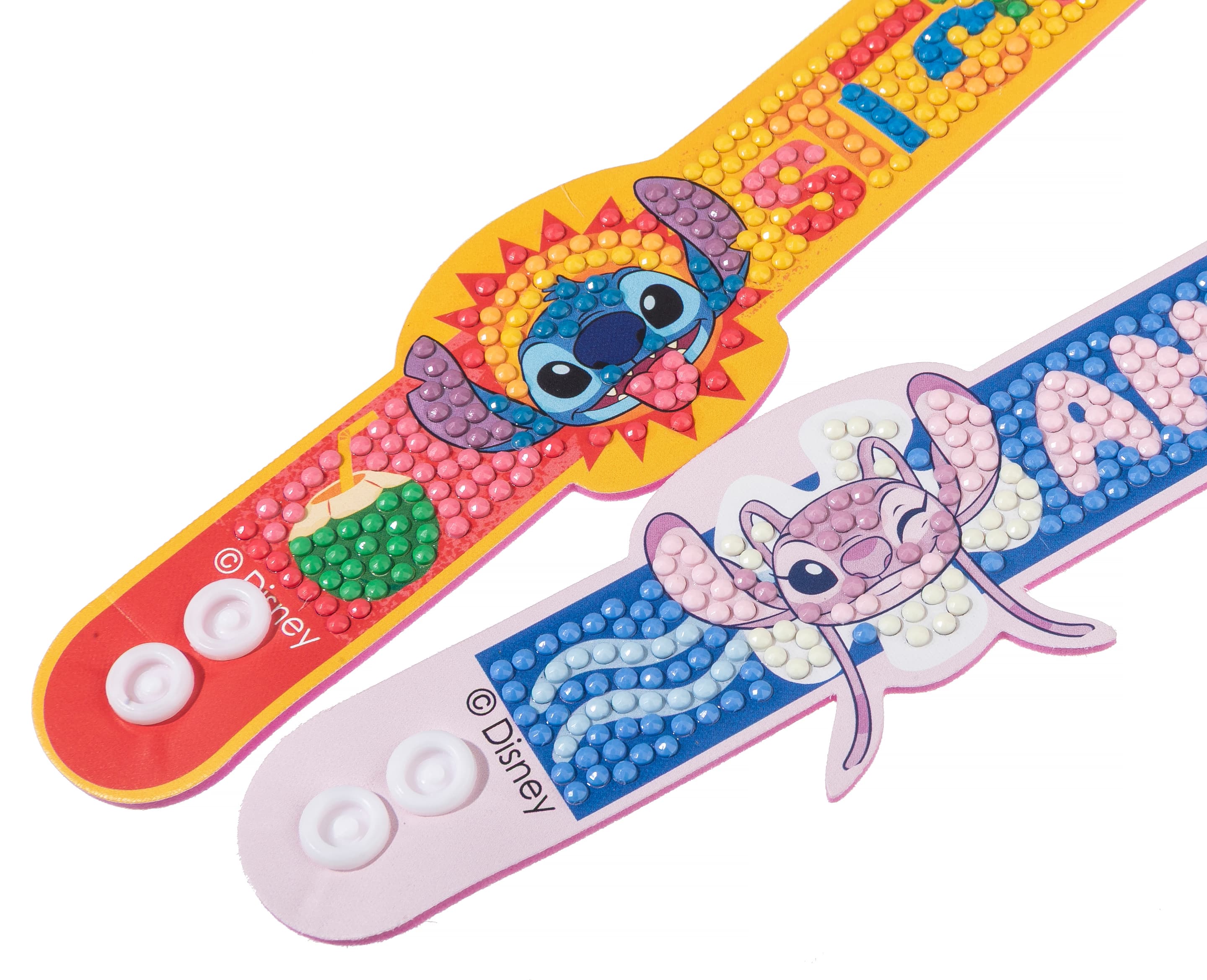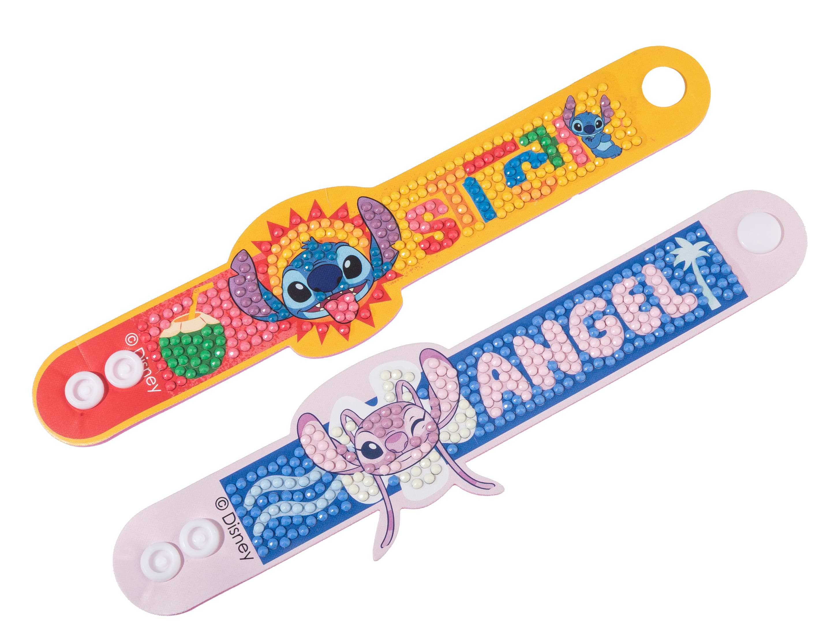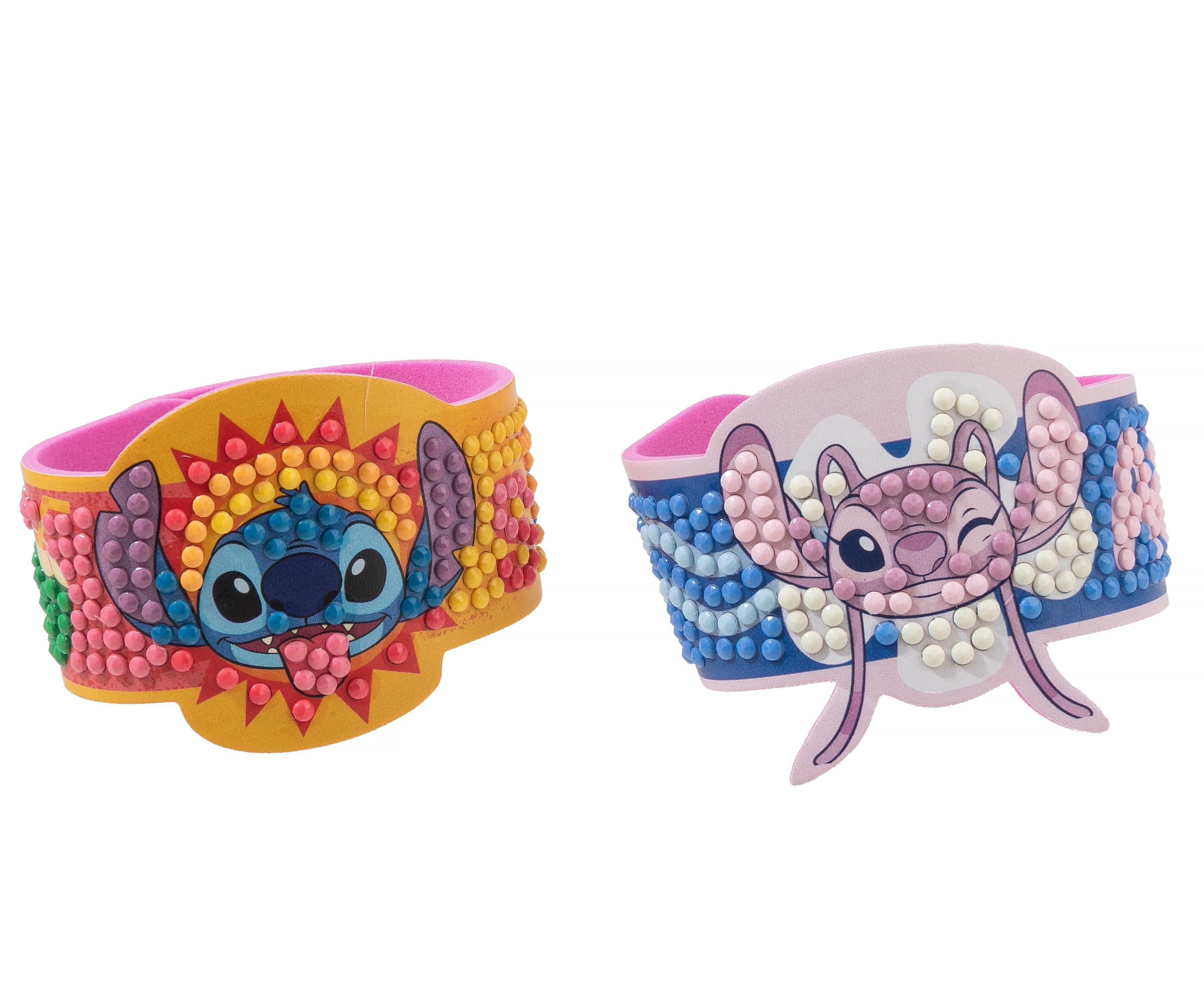 Gestalte zwei funkelnde STITCH-Armbänder nach einem vorgegebenen Design. Alle Kretaivstes enthalten: 2 selbstklebende Kunststoffarmbänder, vorsortierte Beutel mit farbigen Kristallen, Stift zum Aufnehmen der Kristalle, Schale, Gelwachs, Bastelanleitung
