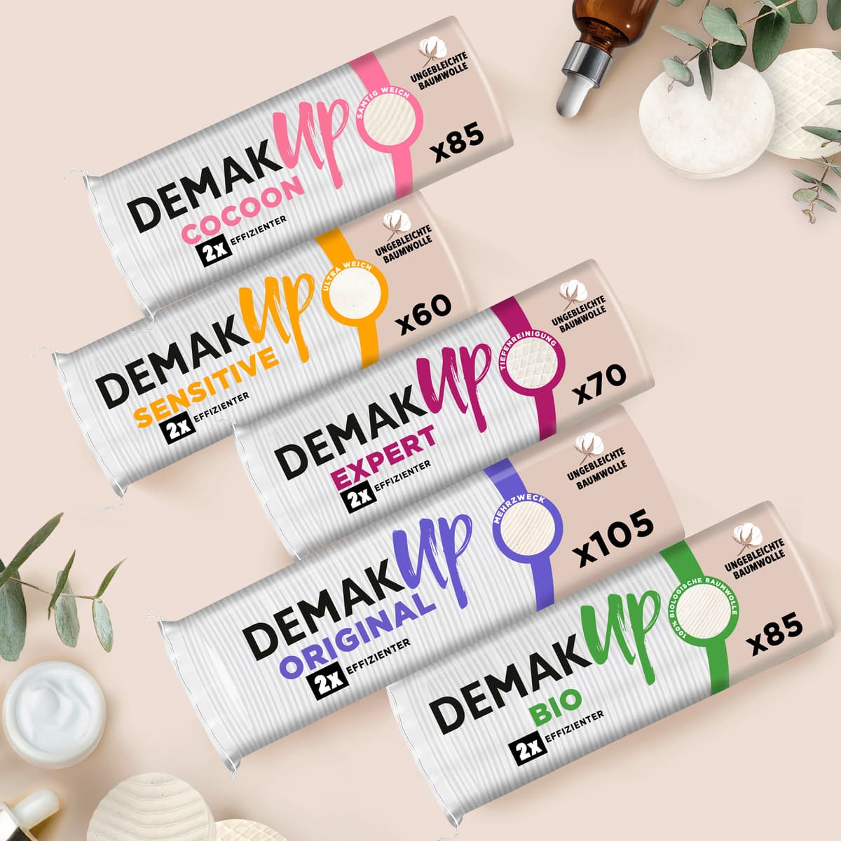 DemakUp Sensitive Wattepads - Ultra-weich für eine optimale Verträglichkeit DemakUp Sensitive Wattepads eignen sich ideal für sensiblere Hauttypen. Die Wattepads befreien die Haut sanft von Make-Up und sind besonders schonend zu sehr empfindlichen Hautpartien. Ultra-weiche Fasern Einzigartige flauschige Struktur Mit Baumwollölextrakt DemakUp betrachtet das einfache Ritual des täglichen Abschminkens als wichtigstes Geheimnis für gesunde Haut und strahlende Schönheit.