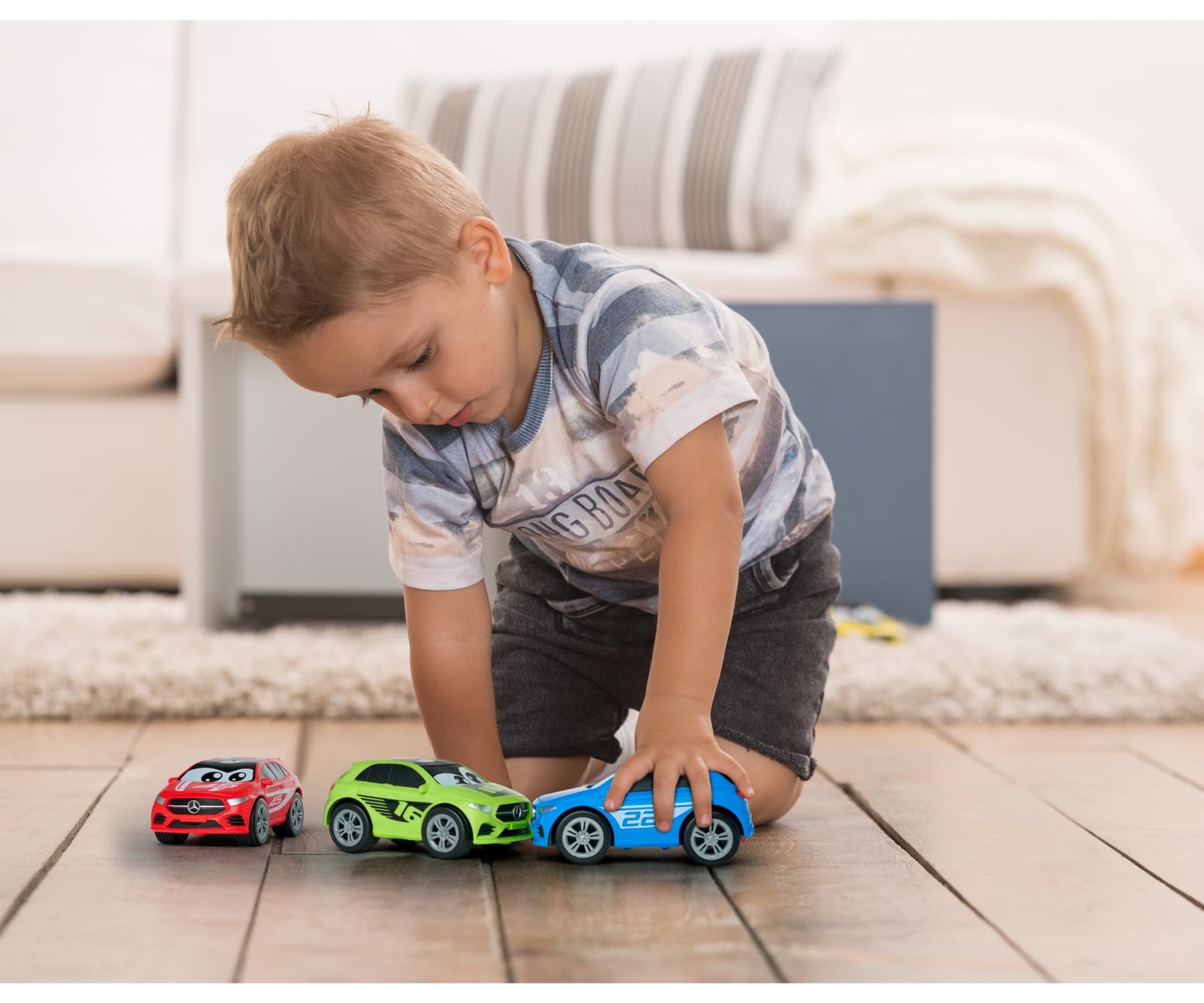 ABC Mercedes Squeezy 3-sort. ABC Knautschfahrzeug - Auto für Babys und Kleinkinder ab 1 Jahr, mit Rückzugmotor und knautschbarer Karosserie, Spielzeug zur Förderung der Motorik • Freie Fahrt voraus - Schon kleine Kinderhände können die 11 cm großen Spielzeugautos greifen und durch den Rückzugmotor durch die Gegend flitzen lassen. • Knautschspielzeug -Das Auto mit dem freundlichen Gesicht ist eine knautschbare Version des beliebten Familienwagens. Beim Spielen mit der A-Klasse lernen Kinder, unterschiedliche Bewegungen gleichzeitig auszuführen. • Motorikförderung – Um die Entwicklung der Kleinsten zu unterstützen kann das Auto geknautscht und nach hinten gezogen werden, um dieses von alleine Fahren zu lassen - idel zur Förderung der frühkindlichen Motorik. • Sicherer Spielspaß – Sicherheit steht für uns an erster Stelle. Selbstverständlichsind die PKWs farbecht, speichelfest, ohne verschluckbare Kleinteile und mit abgerundeten Ecken. Über ABC – Mit unserem altersgerechten Baby- und Kleinkinderspielzeug wollen wir die natürliche Entwicklung in den ersten Lebensjahren spielerisch unterstützen und fördern.