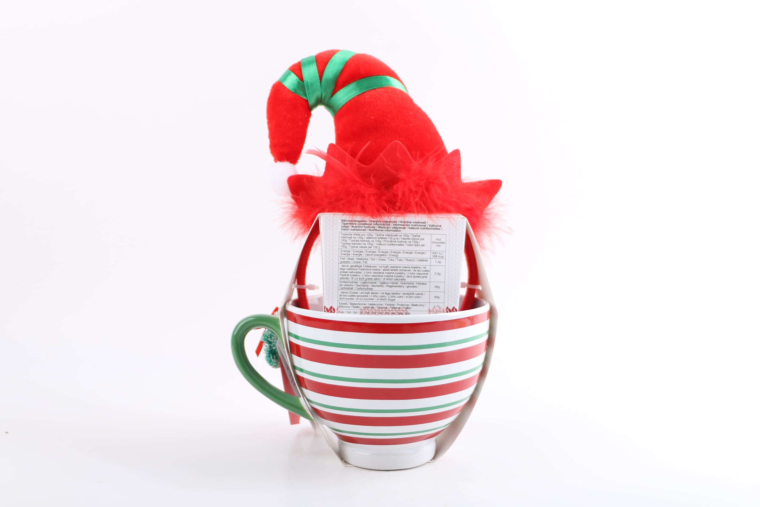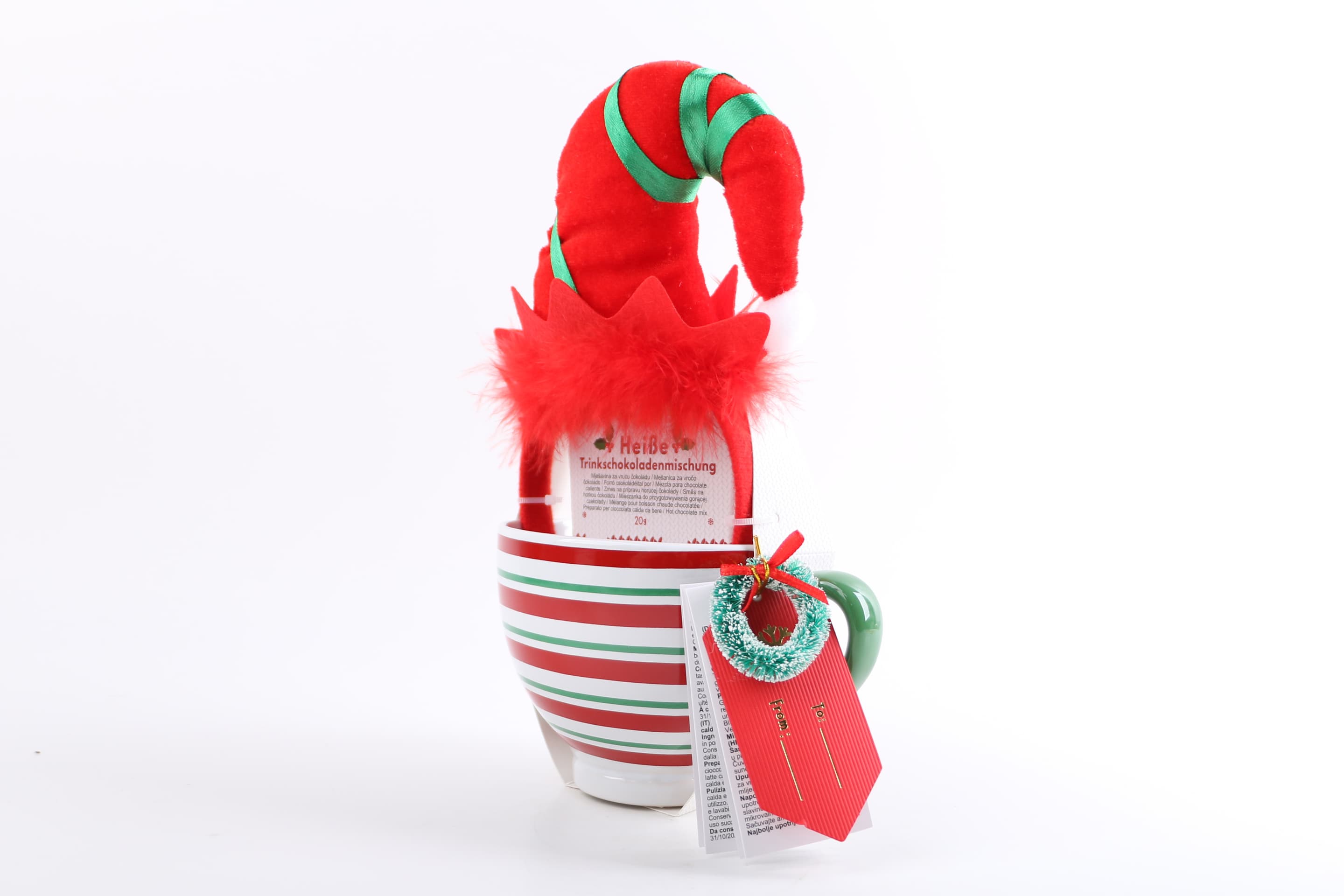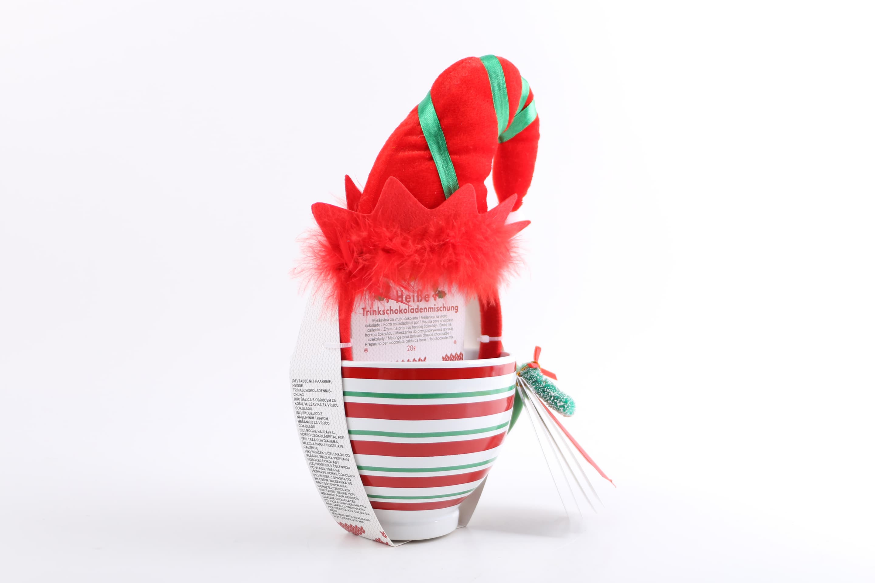 Geschenk-Set Tasse mit heißer Trinkschokoladenmischung & Haarreif Hut.