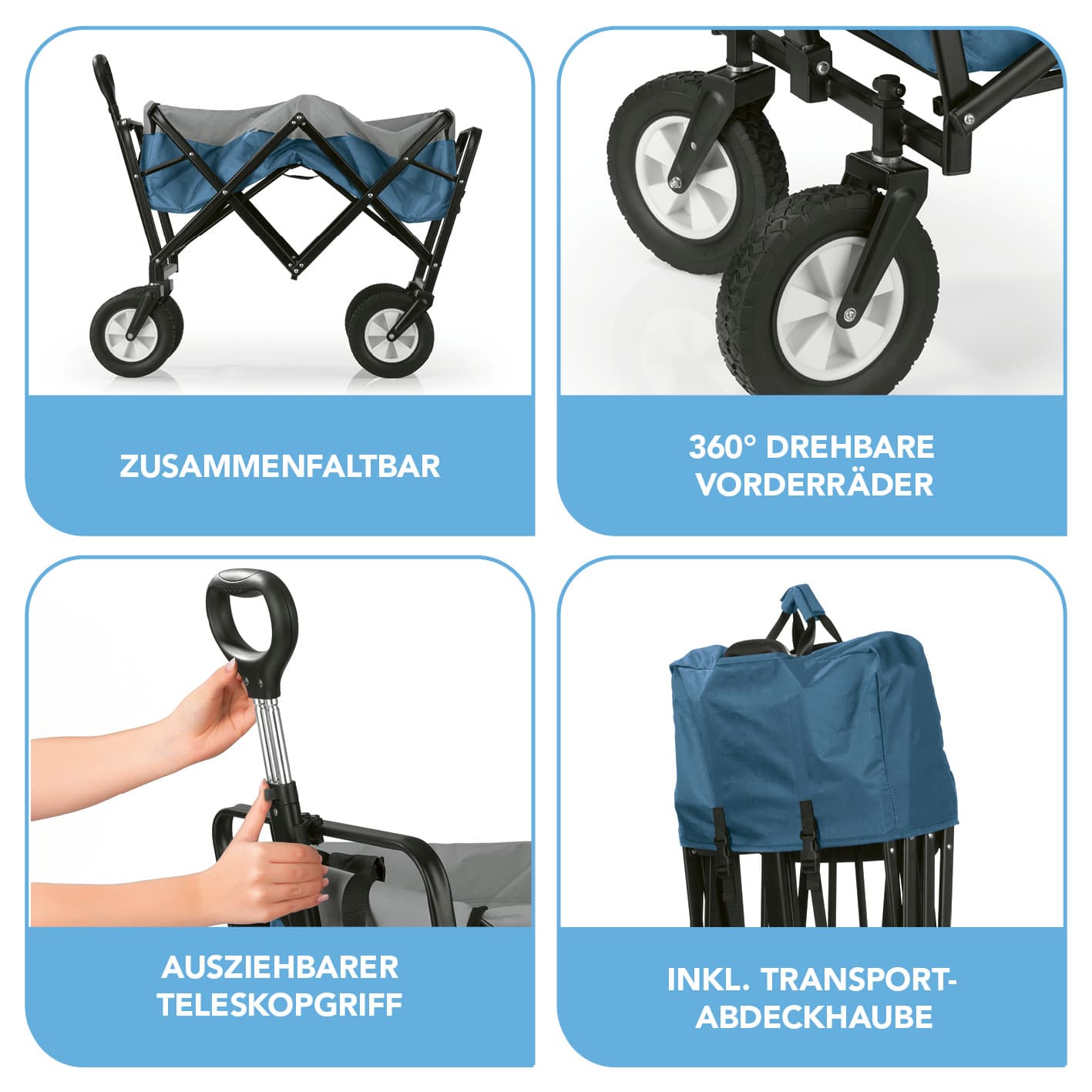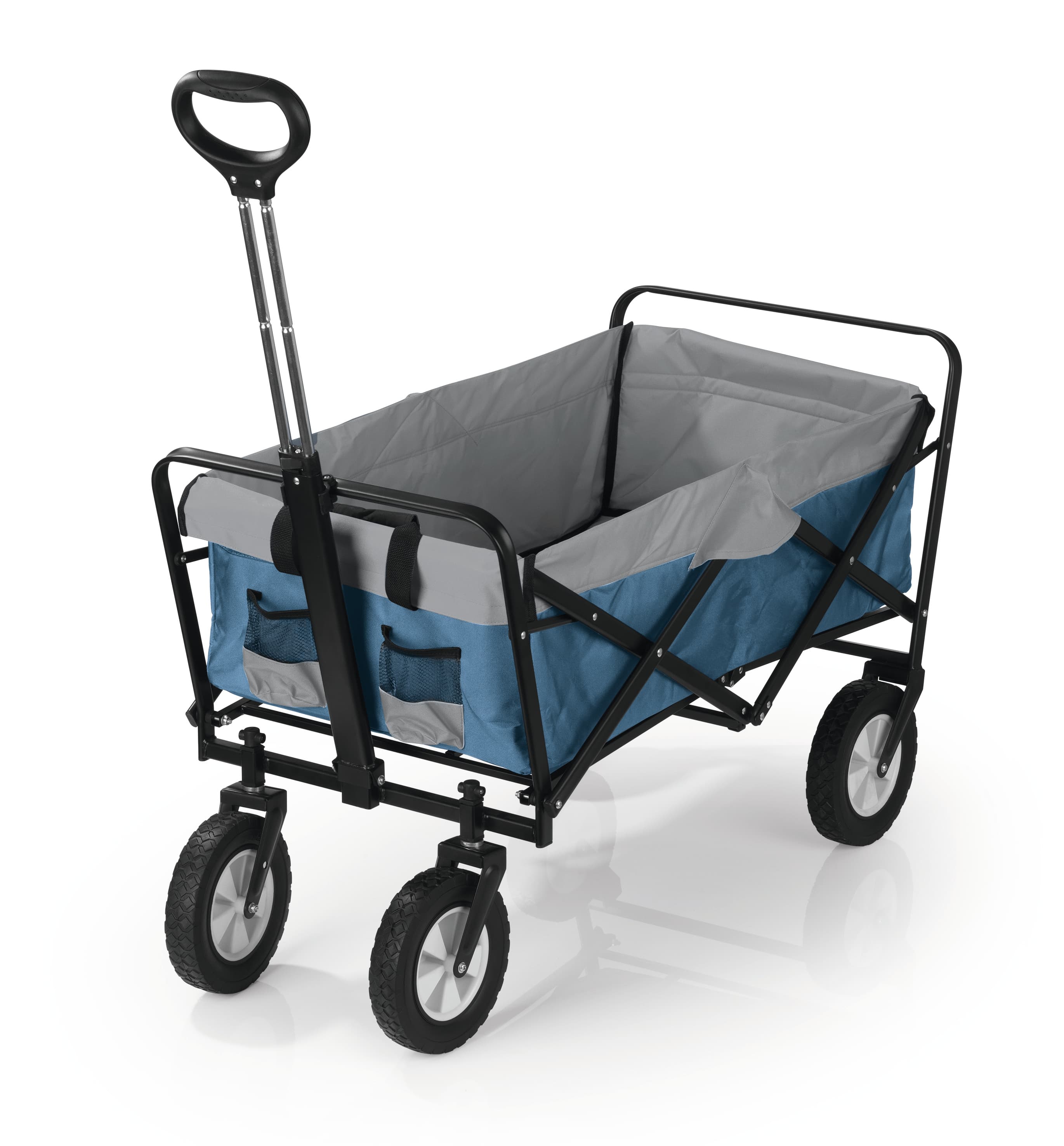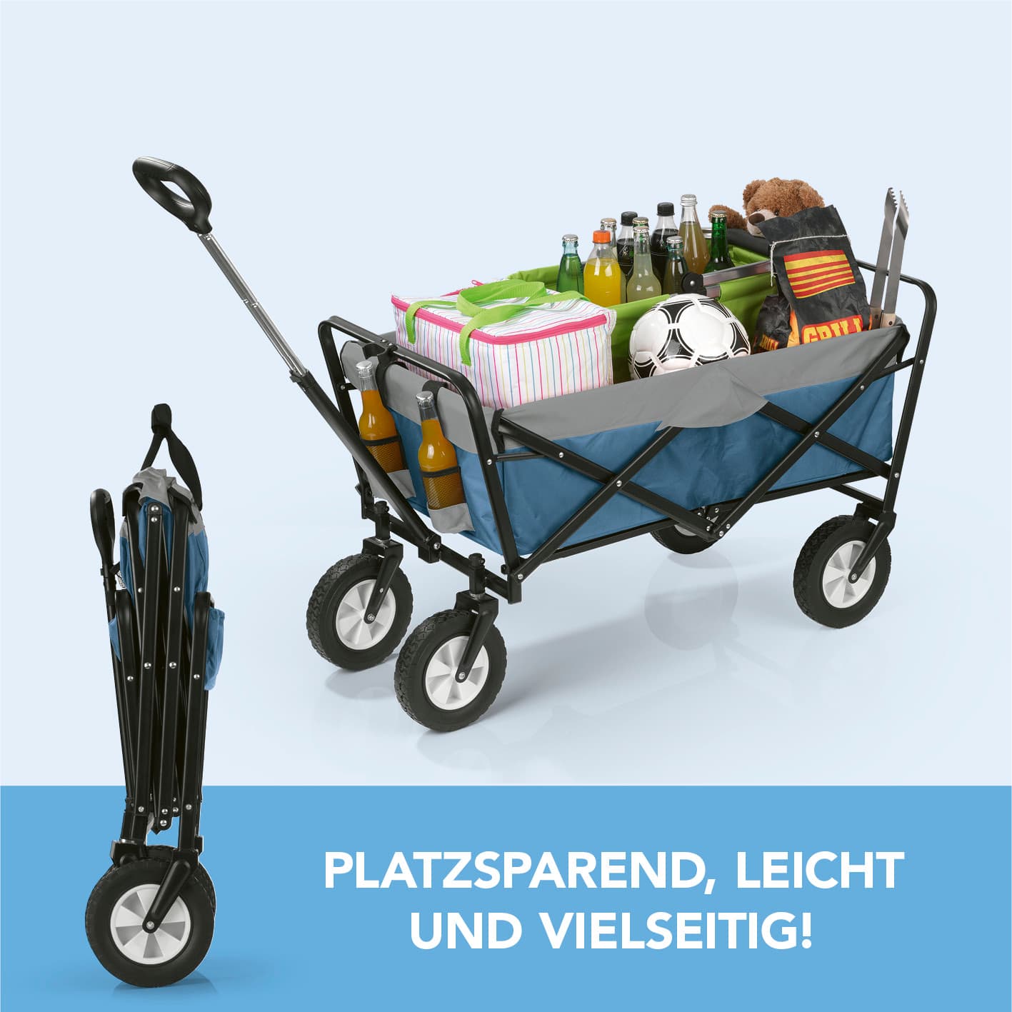 - Die 360°-Drehgelenke an den Rädern machen den Klapp-Bollerwagen besonders wendig und der ausziehbare Teleskopgriff ermöglicht eine komfortable Handhabung. Brauchen Sie den praktischen Begleiter gerade nicht, ist er ruckzuck in der beiliegenden Aufbewahrungstasche verstaut - griffbereit für den nächsten Ausflug.
