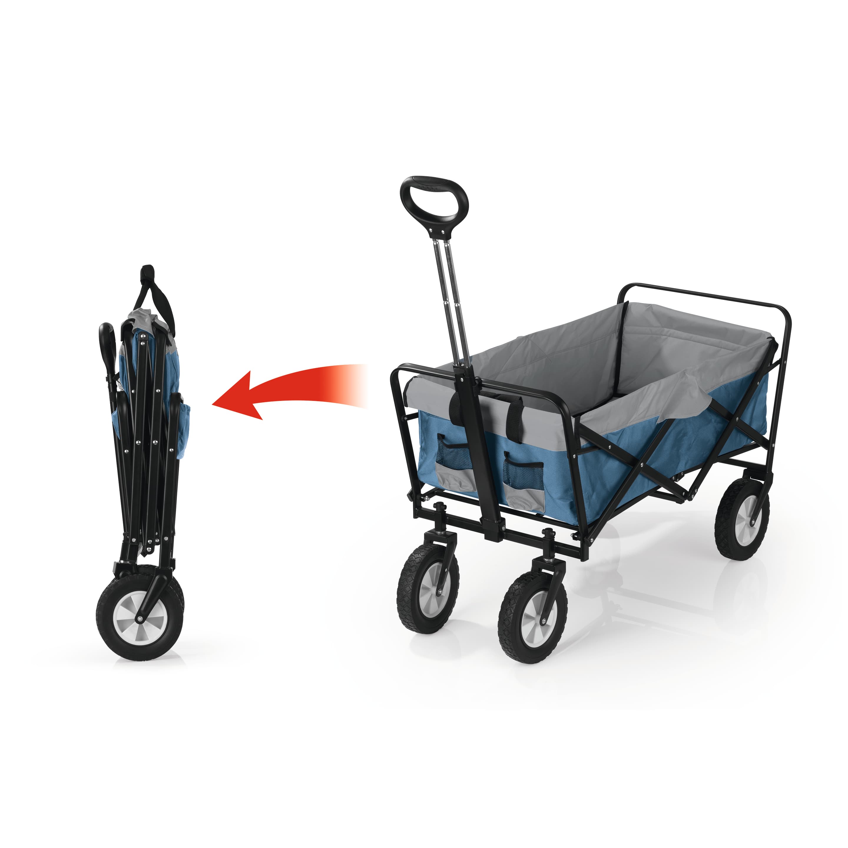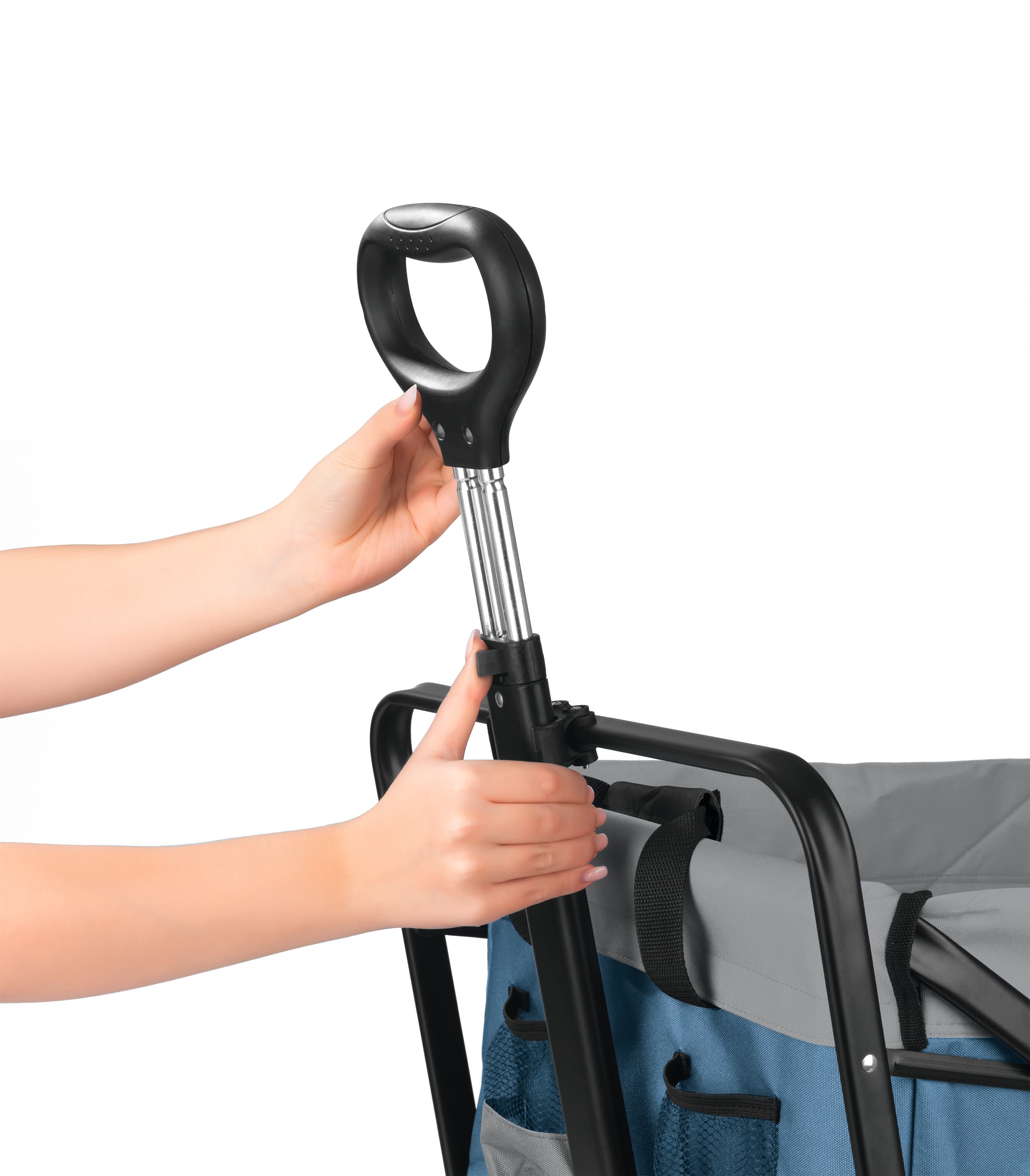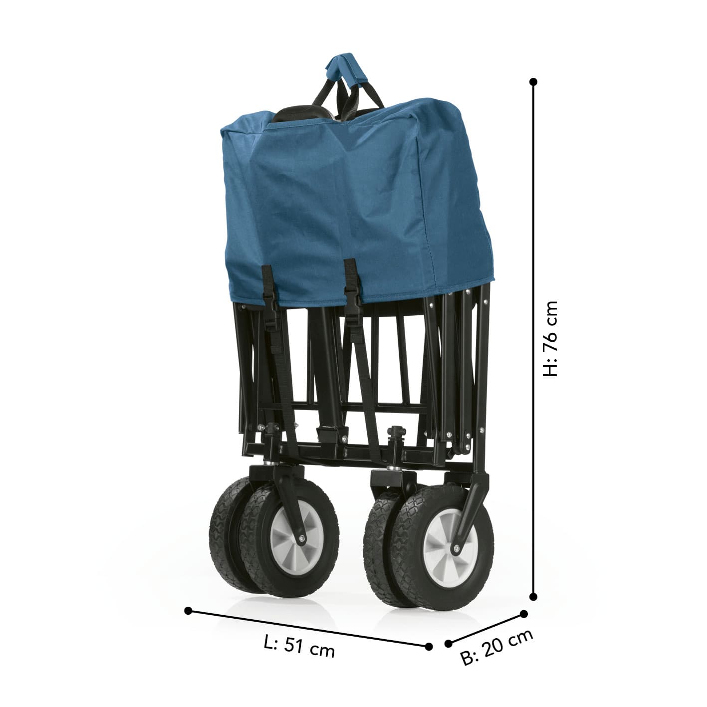 - Die 360°-Drehgelenke an den Rädern machen den Klapp-Bollerwagen besonders wendig und der ausziehbare Teleskopgriff ermöglicht eine komfortable Handhabung. Brauchen Sie den praktischen Begleiter gerade nicht, ist er ruckzuck in der beiliegenden Aufbewahrungstasche verstaut - griffbereit für den nächsten Ausflug.