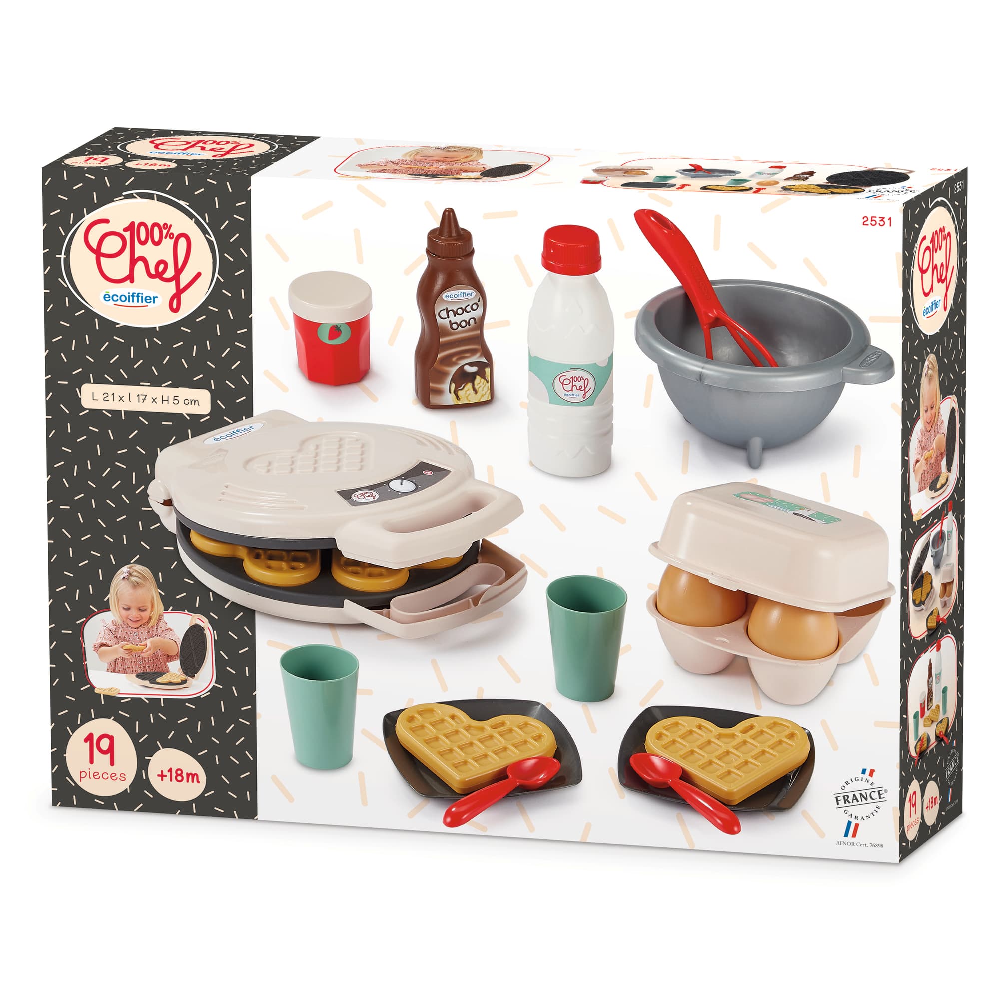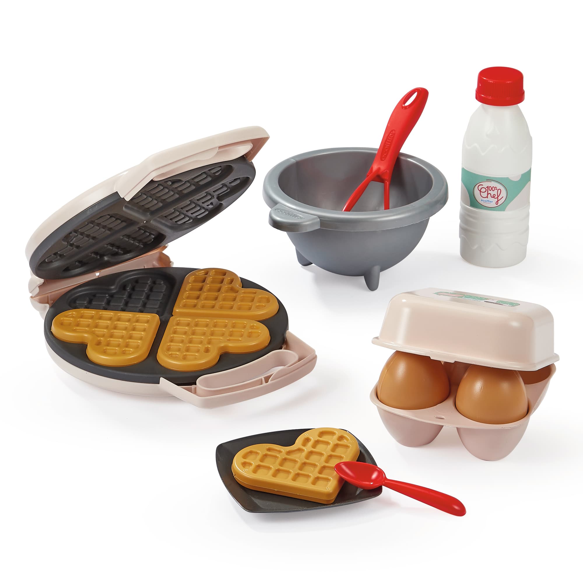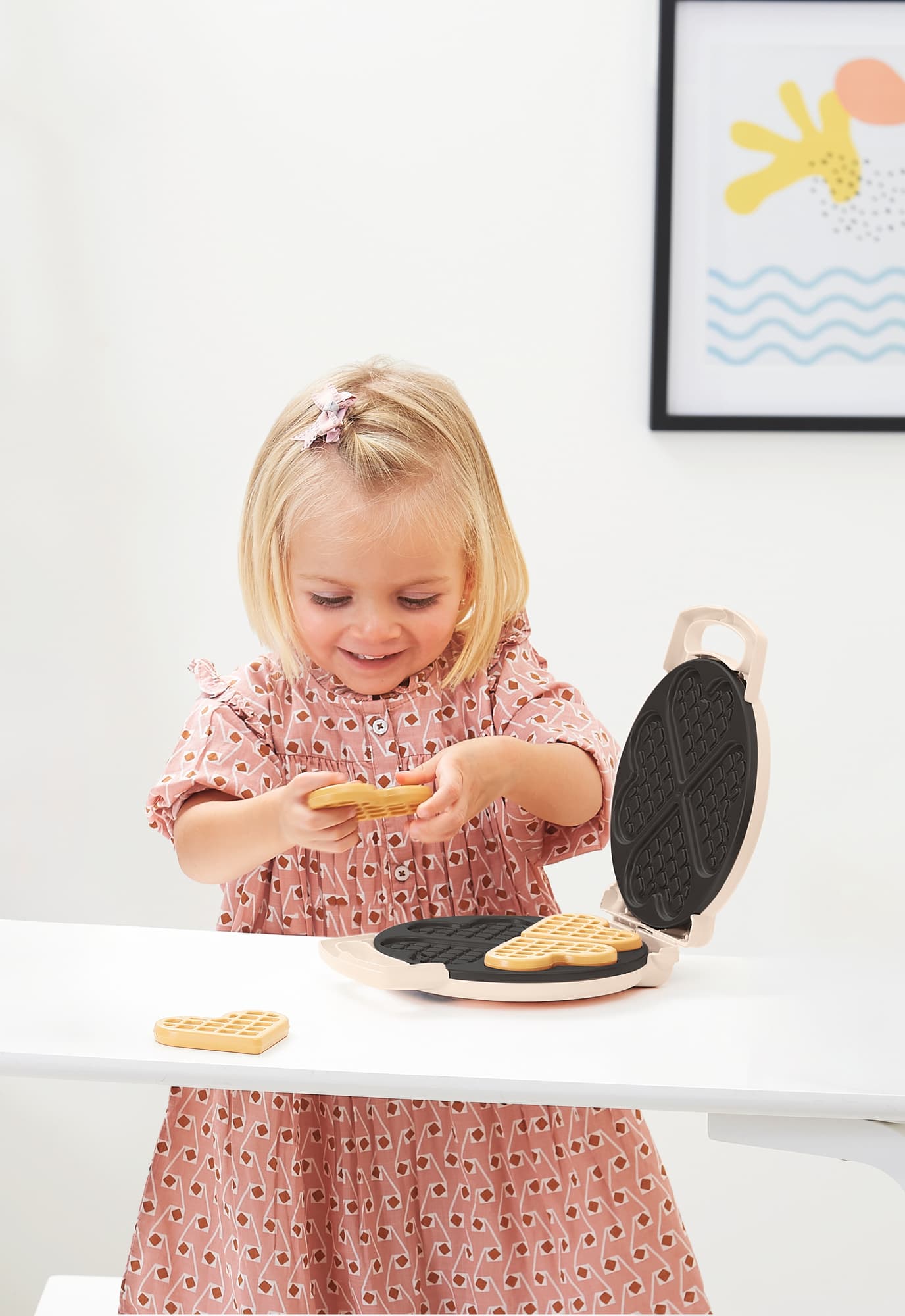 Hier können sich kleine Bäcker richtig austoben! Das formschöne Backset mit Waffeleisen lädt zur Backrunde mit den besten Freunden ein. Erst die Eier, die Milch und das Mehl in die Rührschüssel und geschwind mit dem Schneebesen verrührt - mit dem originalgetreu nachempfundenen Waffeleisen lassen sich leckere Waffeln in Herzform zaubern - ganz wie bei den Großen! Zum Servieren lassen sich die Waffeln hervorragend auf den beiden mitgelieferten Tellern anrichten.