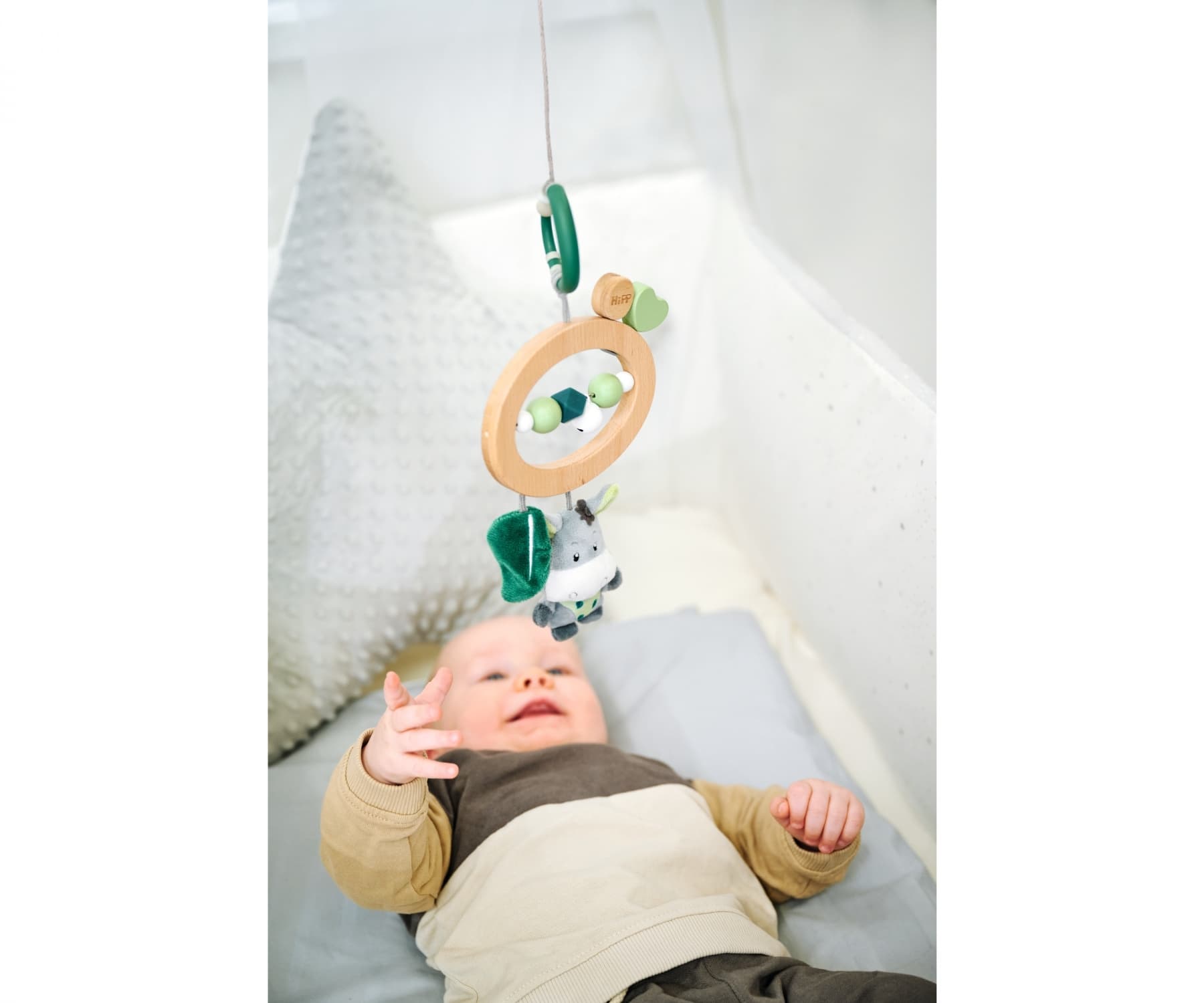 Eichhorn Baby HIPP Mobile für unterwegs: Das hochwertige Eichhorn Baby HIPP Mobile für unterwegs aus Buchenholz, weckt die Aufmerksamkeit von Babys. Das Baby kann den Perlen und den süßen Plüschelementen mit den Augen folgen und wird zum Greifen animiert. Für die Herstellung des Eichhorn Mobiles wird ausschließlich Holz aus nachhaltiger Forstwirtschaft verwendet. Für Kinder ab einem Jahr geeignet.