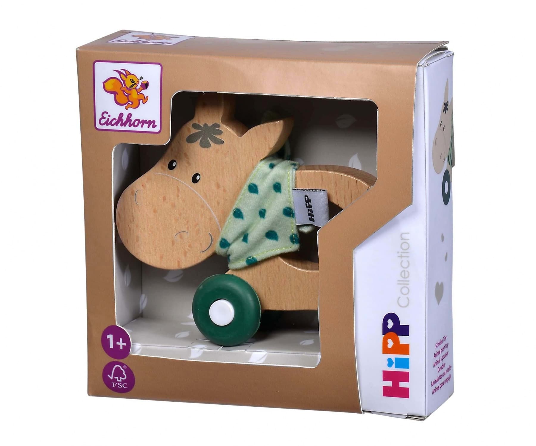 Eichhorn Baby HIPP Schiebe-Esel: Der hochwertige Eichhorn Baby HIPP Schiebe-Esel aus Buchenholz ist perfekt für kleine Babyhände, die Form ist angenehm zu greifen und zu schieben. Die Silikonreifen sind geräuschlos und hinterlassen keine Spuren. Für die Herstellung des Eichhorn Schiebe-Esels wird ausschließlich Holz aus nachhaltiger Forstwirtschaft verwendet. Für Kinder ab einem Jahr geeignet.