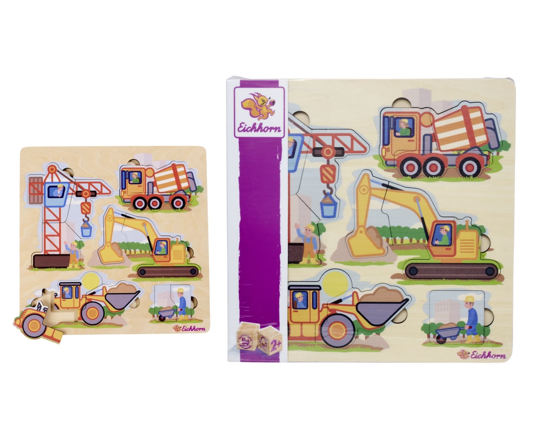 Entdecke das Eichhorn Baufahrzeuge Holzpuzzle – ein perfektes Geschenk für kleine Baumeister ab 2 Jahren! Mit seinen 12 stabilen Holzteilen, gefertigt aus zertifiziertem Holz, bietet dieses Puzzle nicht nur farbenfrohe Motive von Baufahrzeugen wie Kran, Bagger, Radlader, Betonmischer und Bauarbeiter, sondern fördert gleichzeitig die Feinmotorik und Konzentration deines Kindes. Ob beim gemeinsamen Puzzeln oder alleine – dieses Puzzle verspricht langanhaltenden Spielspaß und wertvolle Lerneffekte. Das Eichhorn Holzpuzzle ist die ideale Wahl für umweltbewusste Eltern, die Freude und Förderung in einem vereinen möchten.