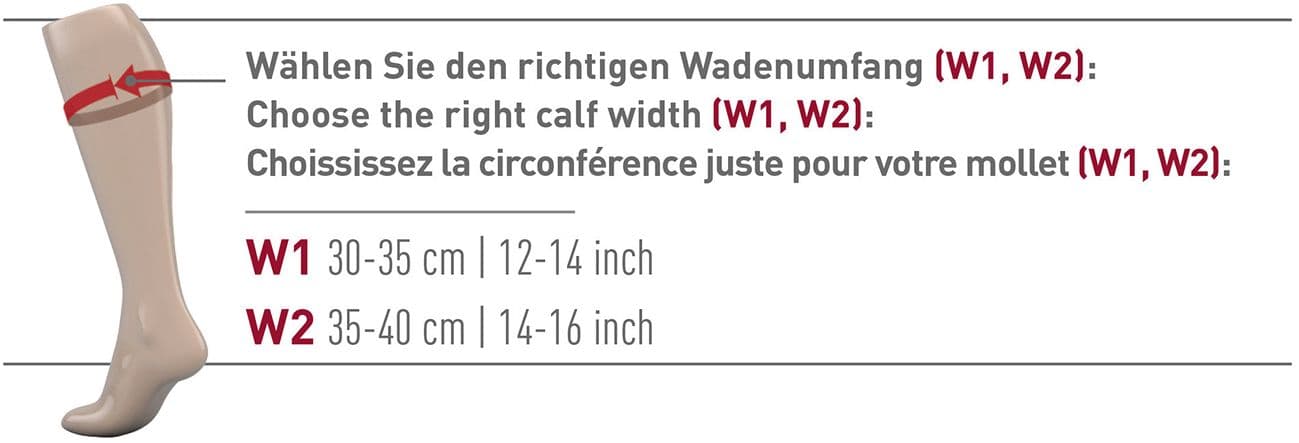 W1(Wadenbreite) = 30-35 cm, W2 = 35-40 cm