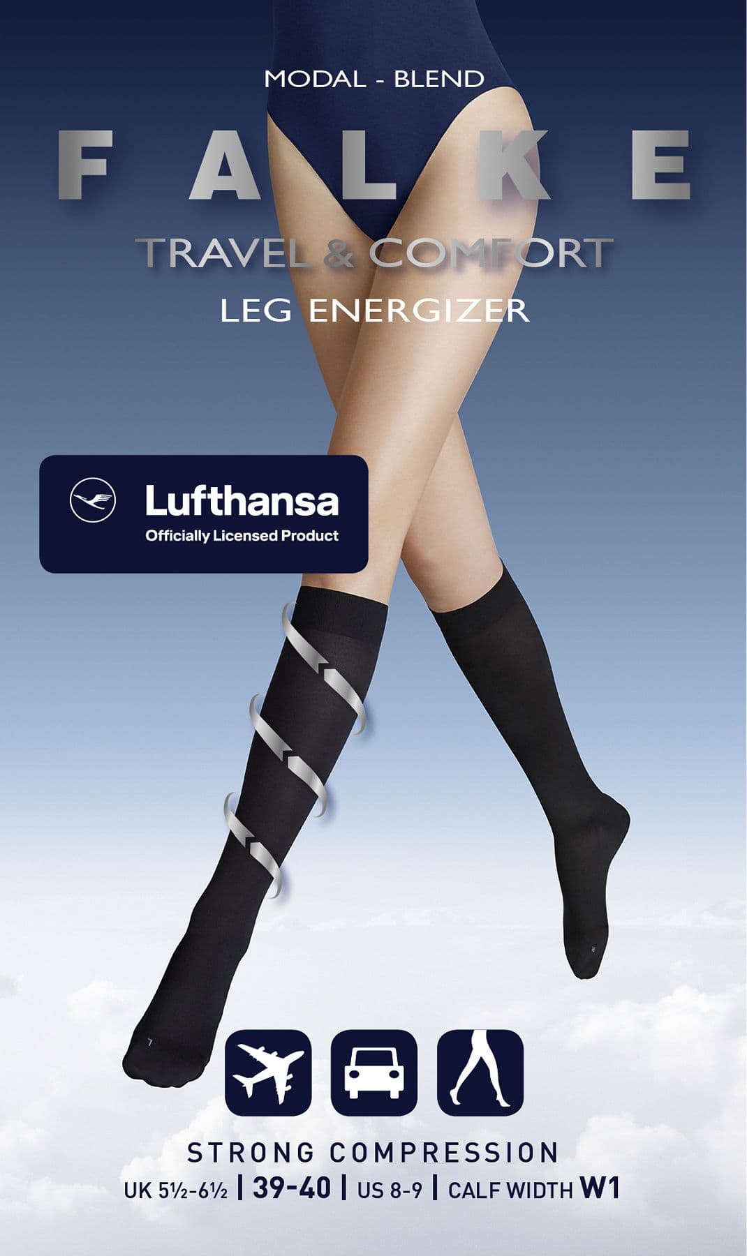 Aktive Belebung und Energie für die Beine dank Kompressionseffekt. Für extreme Belastungen im Sitzen, Stehen und Gehen sowie bei langen Reisen und Langstreckenflügen. Exzellenter Tragekomfort und uneingeschränkte Bewegungsfreiheit, sowie eine anatomische Passform und ein faltenfreier Sitz am Bein zeichnen diese Kniestrümpfe aus.