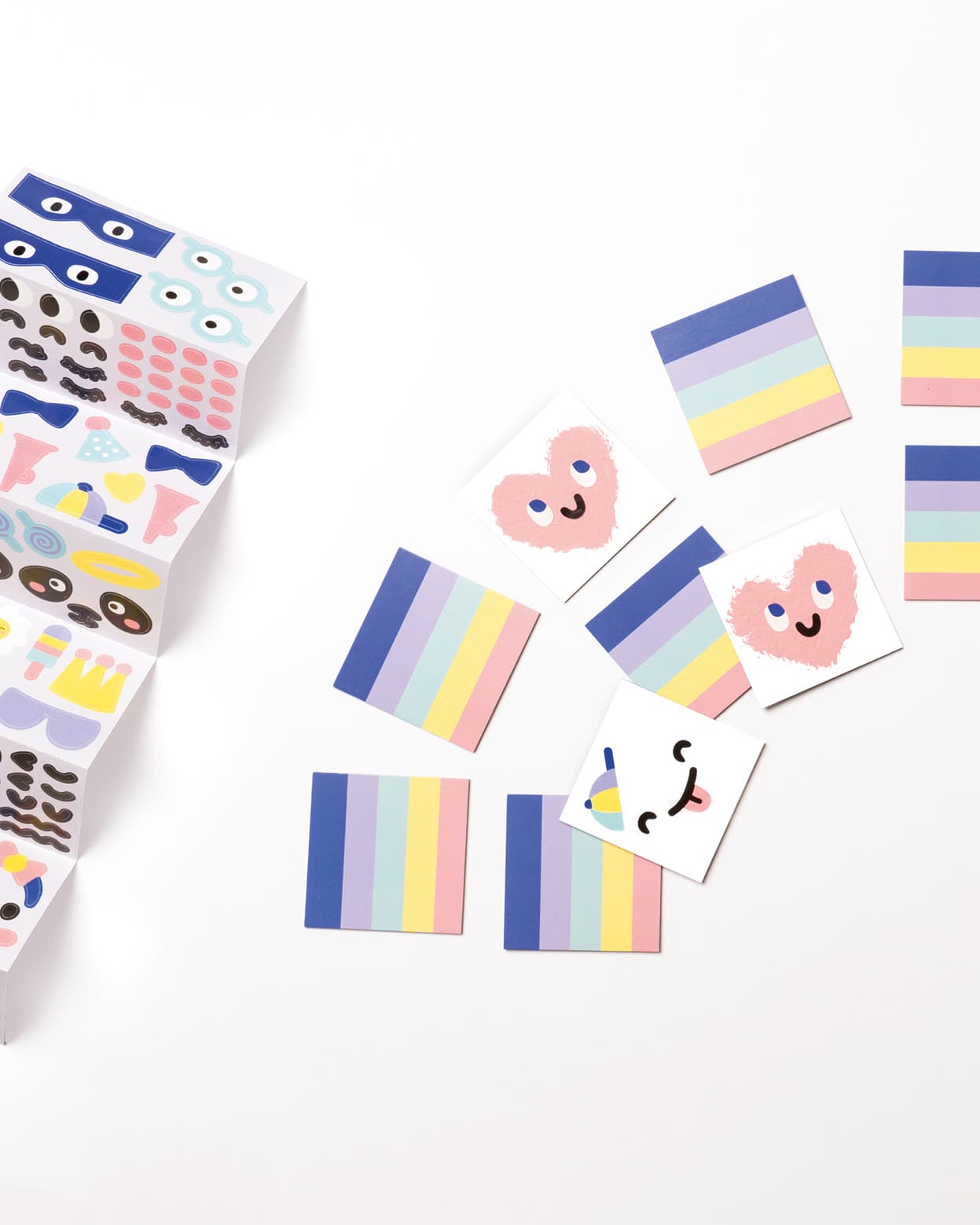 60 Karten, 4-farbig gedruckt mit 136 Stickern