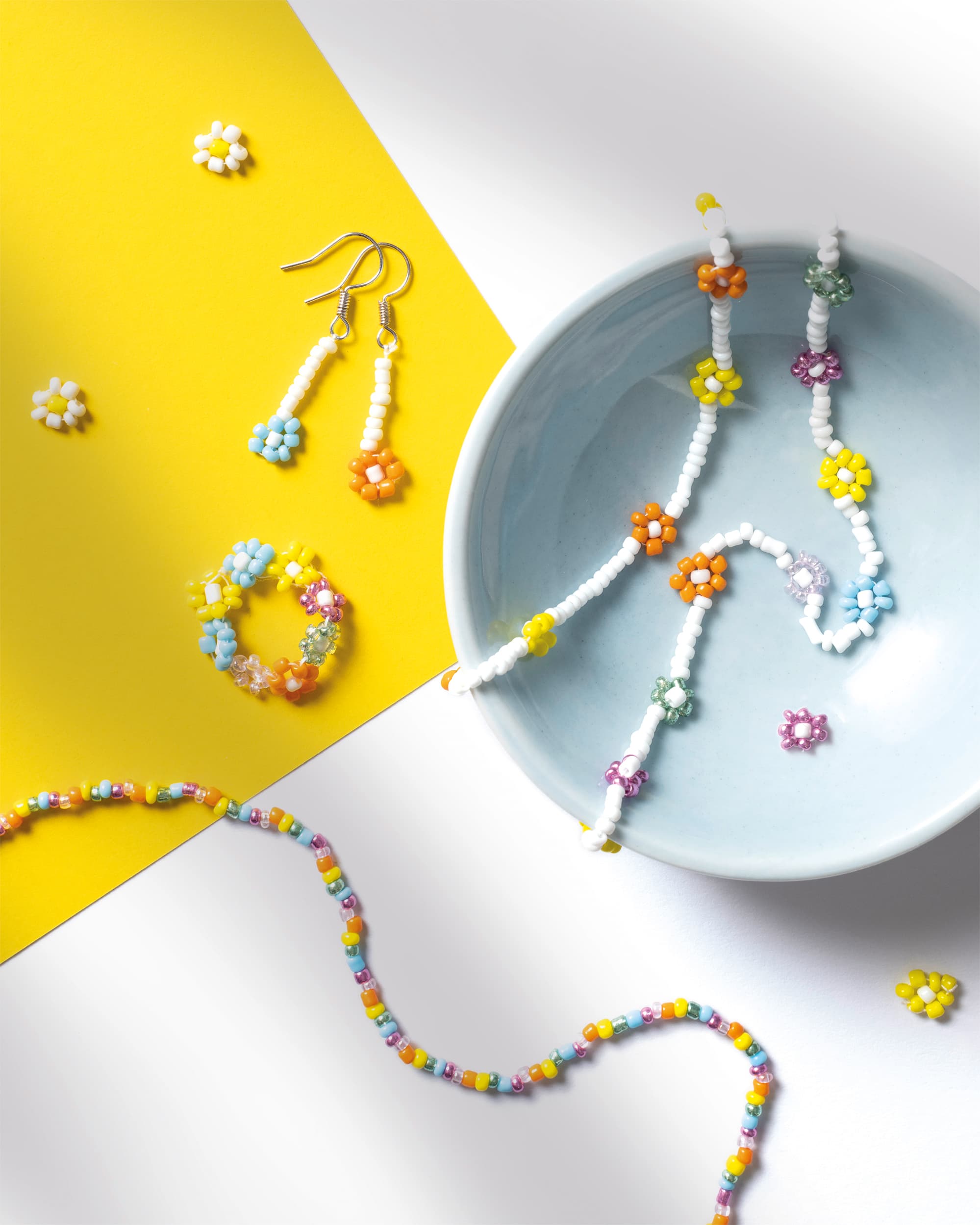~90g Perlen, 3x1m Nylonfaden, 3 Verschlüsse
