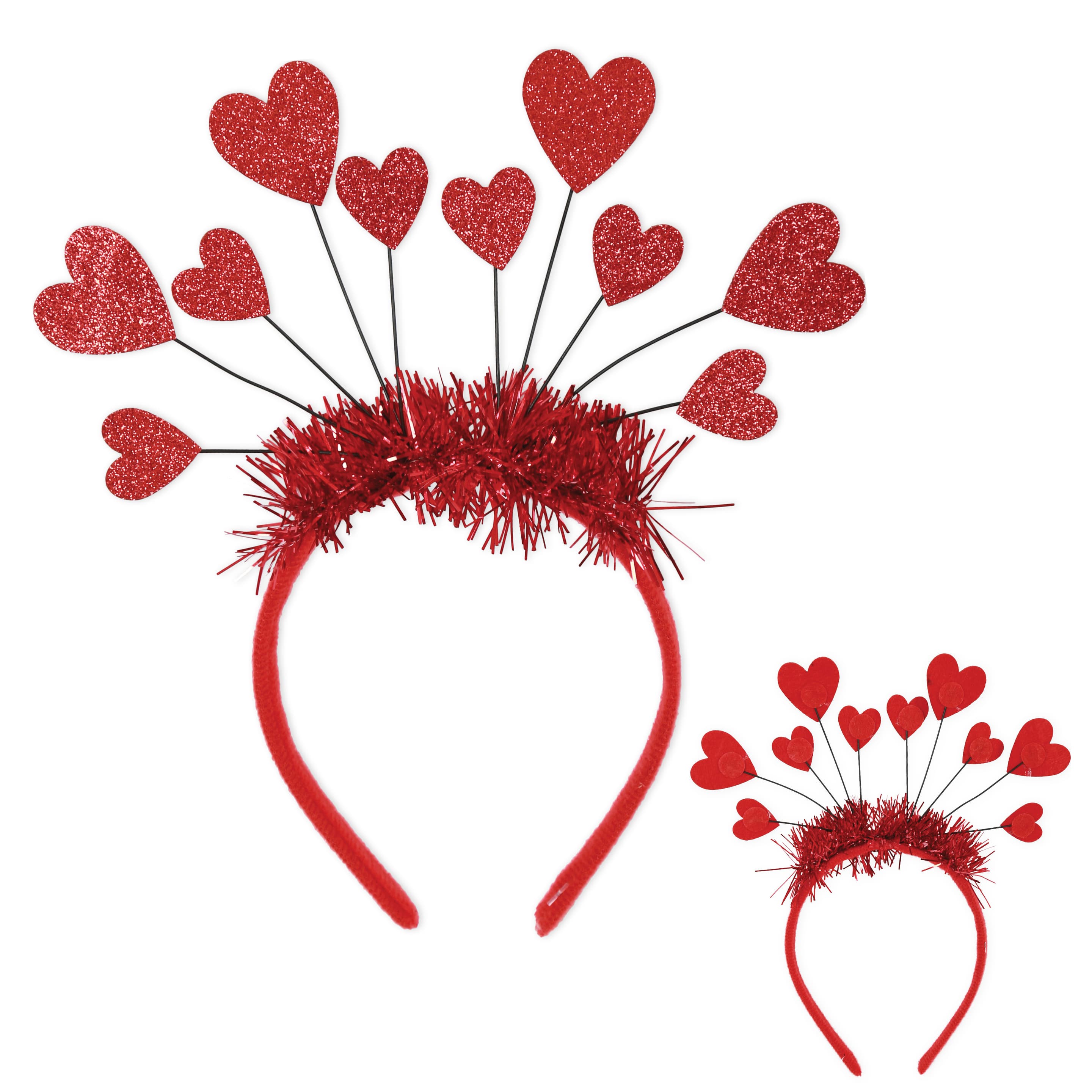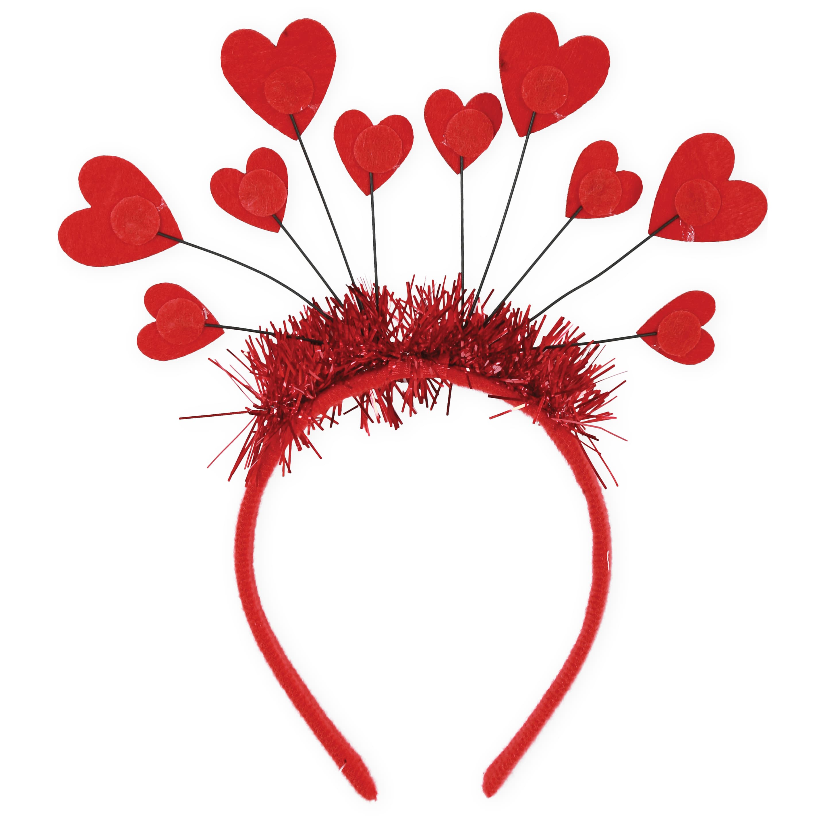 Für herzliche Menschen, die gute Laune verbreiten wollen, ist dieser Haarreif das perfekte Accessoire. Auf dem roten Haareif mit Glitzergirlande sprießen wie zauberhafte Blumen die großen und kleinen Herzen. Ob Karneval oder Party, damit setzen Sie Ihre Frisur wunderbar in Szene.