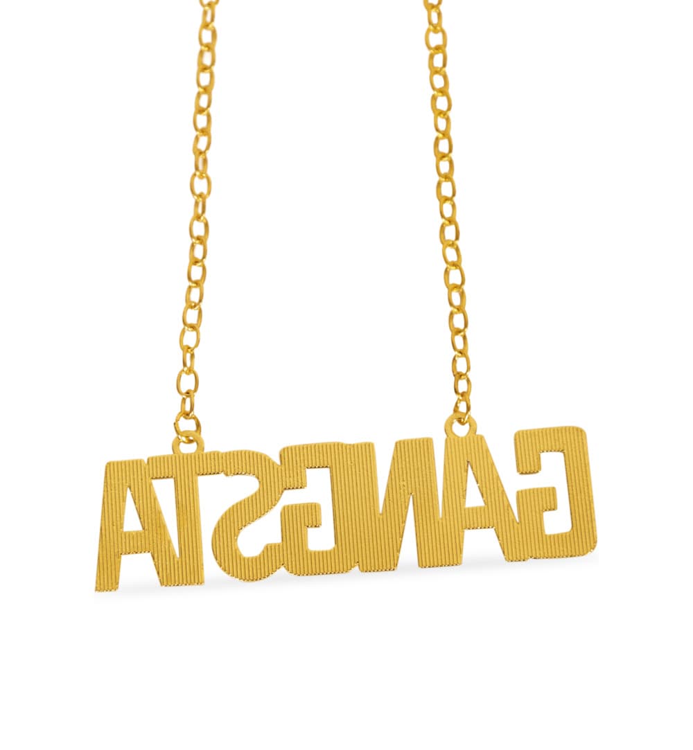 Sei ein cooler Gangsta und setz ein fettes Statement! Diese goldene Kette mit großem „Gangsta“-Anhänger ist der perfekte Hingucker für jede Karnevalsparty. Glänze, posiere und bring den echten Street-Vibe auf die Tanzfläche!