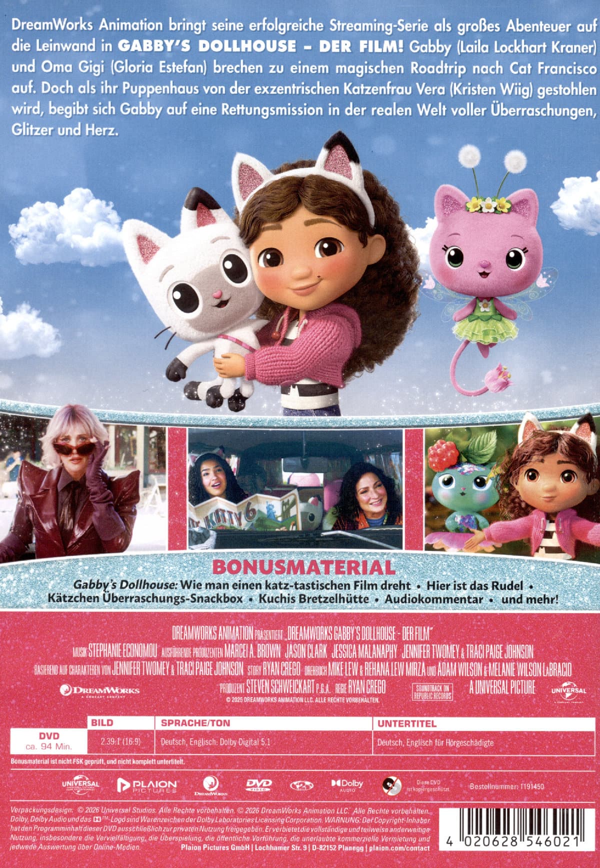 | Zusatzinfos / Bonusmaterial beim Film dabei | Audiokommentar; Deleted Scene; Making of; Pfotastische Darbietungen; Triff die Katzen; Kätzchen Überraschungsbox; Kuchis Brezelhütte; |