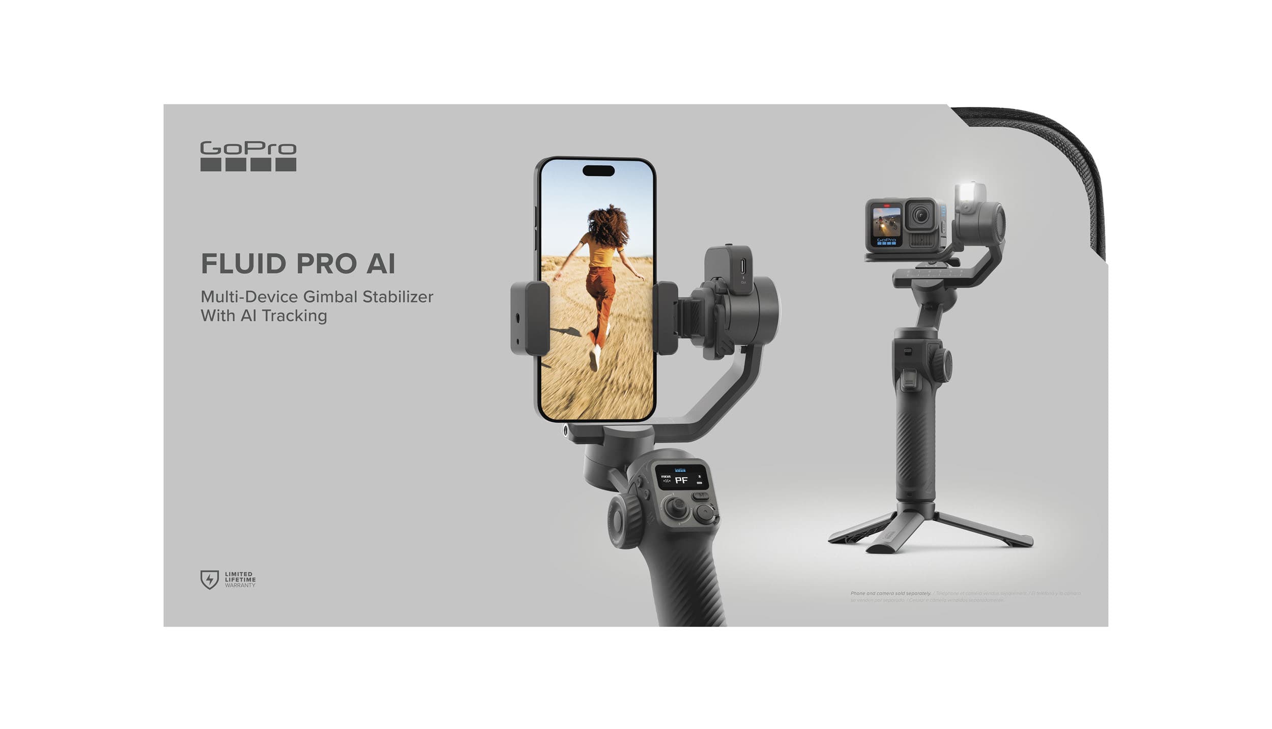 • Die GoPro Fluid App verwendet die drahtlose Verbindung zwischen deinem Smartphone und dem Gimbal, um dir kreative Tools für Video und Fotoaufnahmen zu bieten.
