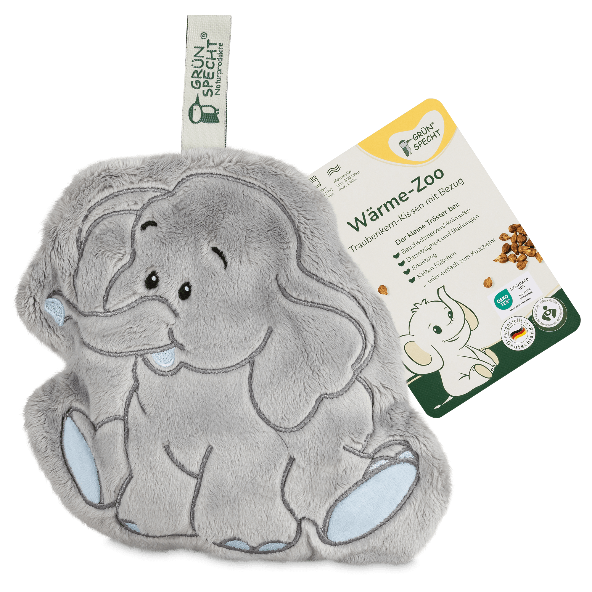 Das Traubenkernkissen in niedlicher Elefantenform von GRÜNSPECHT ist ein wohltuender Begleiter für Kinder. Es kann zur Wärmeanwendung genutzt werden und trägt zum allgemeinen Wohlbefinden bei.