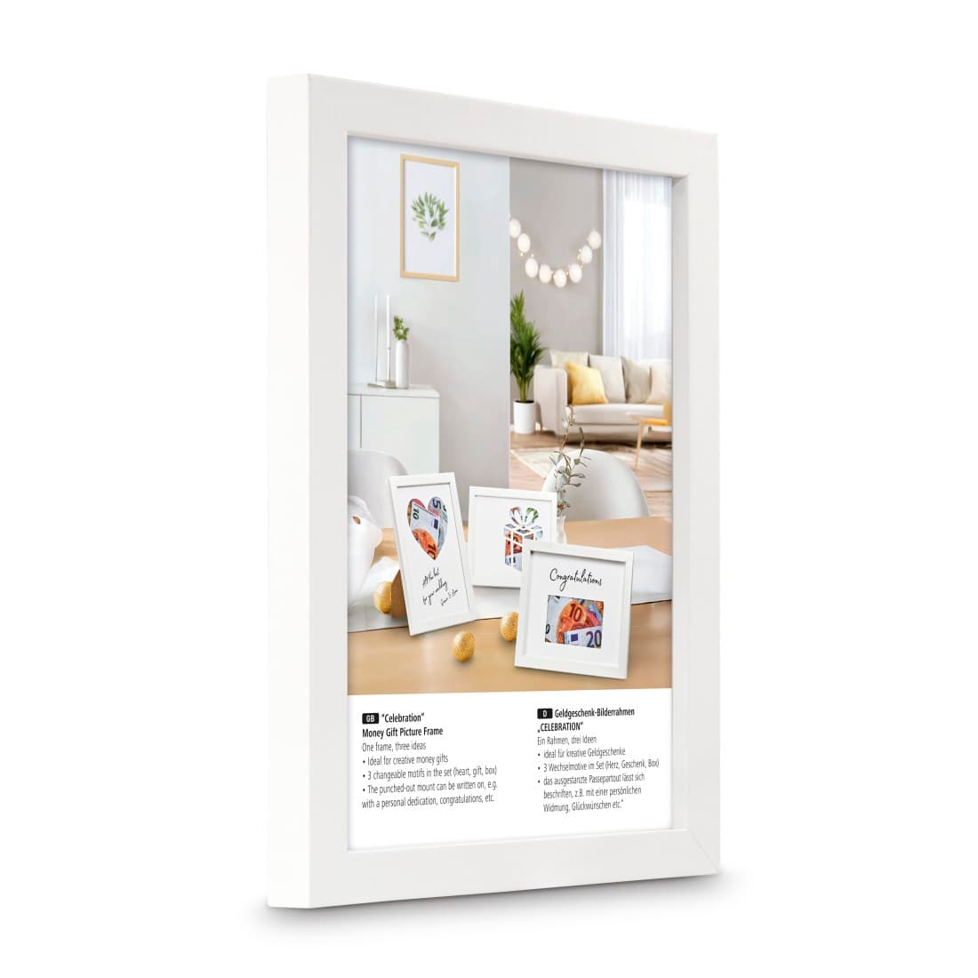 Lieferumfang- 1 Geldgeschenk-Bilderrahmen "Celebration"