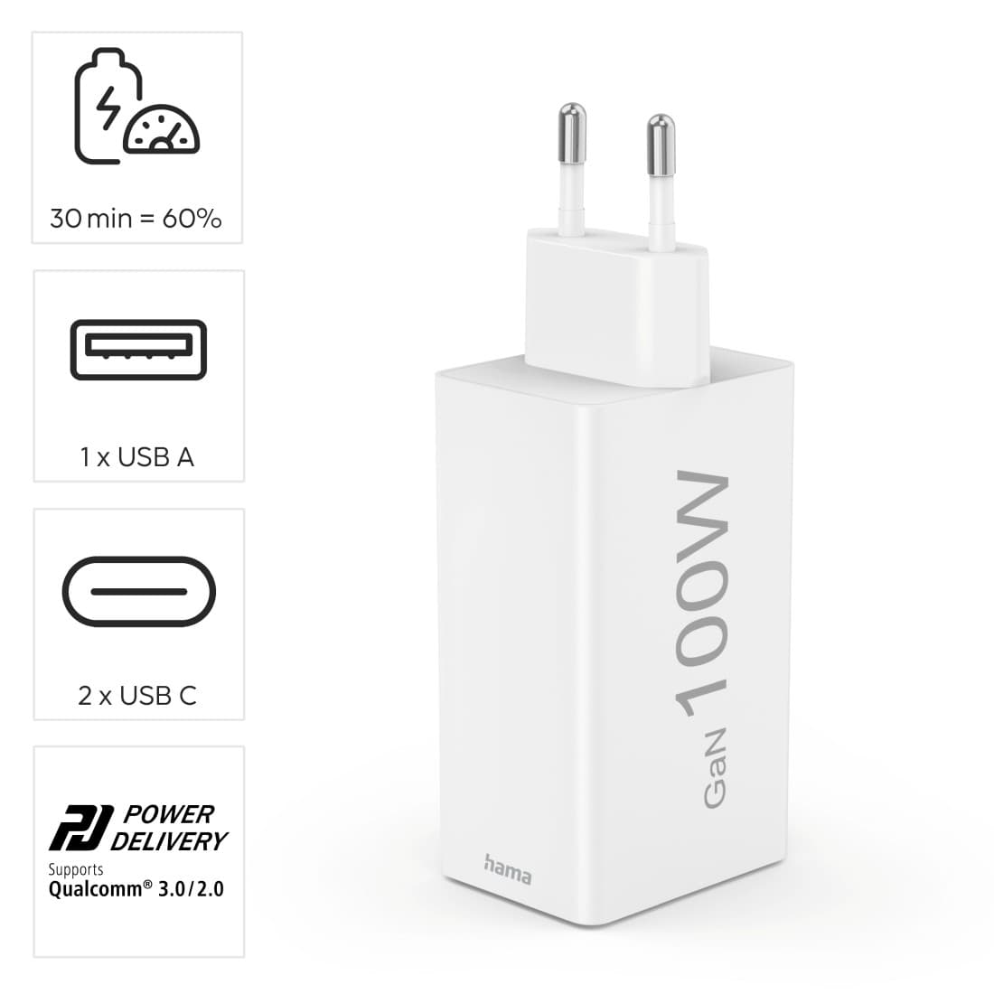 - max. Ausgangsleistung: 100 Watt – Universal-Ladegerät zum schnellen Aufladen von Handys und vielen weiteren Geräten per USB-A- und USB-C-Schnittstelle