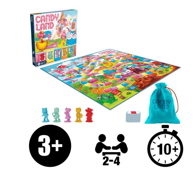 Willkommen im Zuckerland! Die überarbeitete Candy Land 2025 Edition von Hasbro bringt frischen Wind in das beliebte Vorschulspiel. Mit einem größeren Spielbrett, neuen Charakteren, zwei Spielmodi (klassisch & kooperativ) und einem Stoffbeutel voller „Süßigkeiten“-Tokens erleben Kinder fantasievolle Abenteuer auf dem Weg zum Candy Castle.