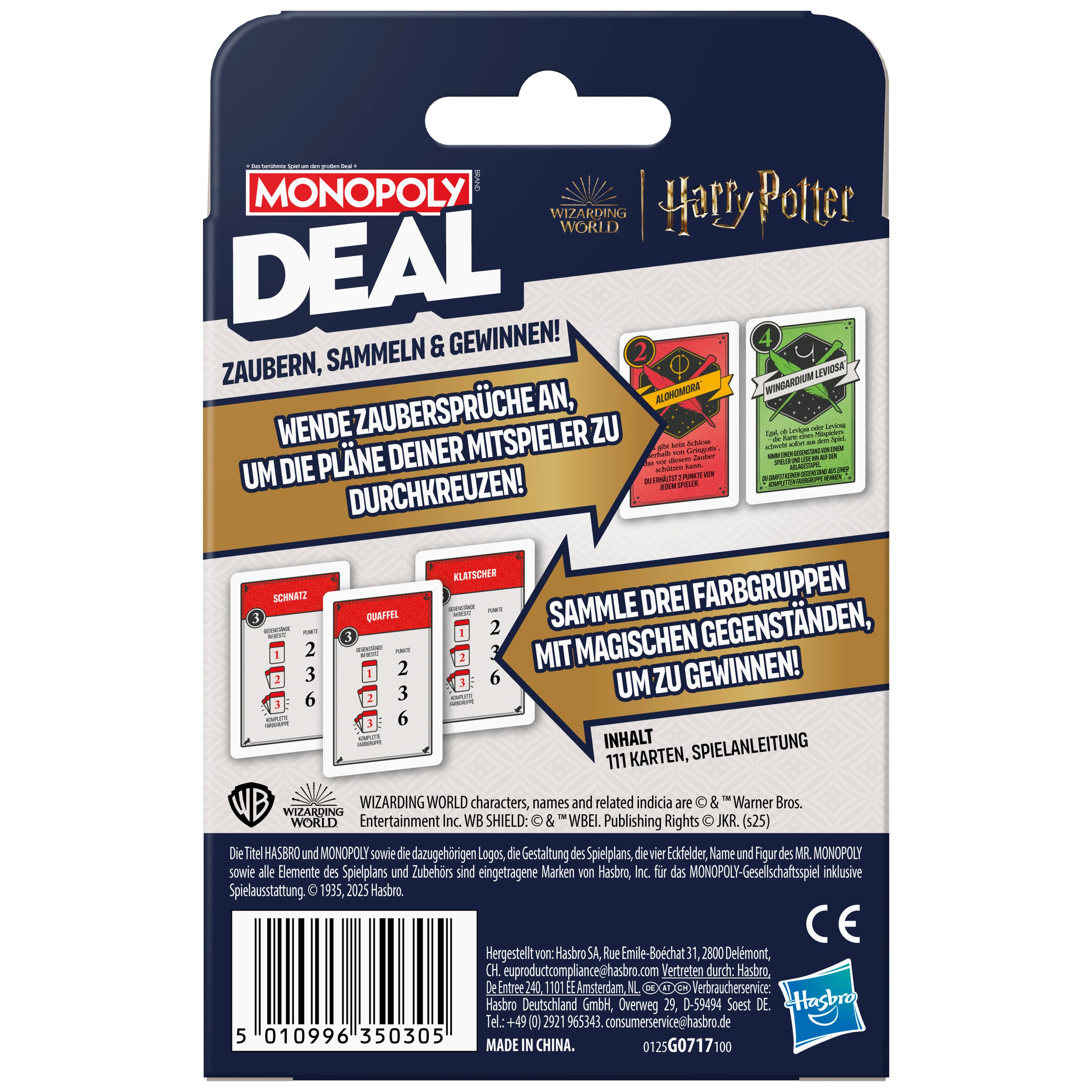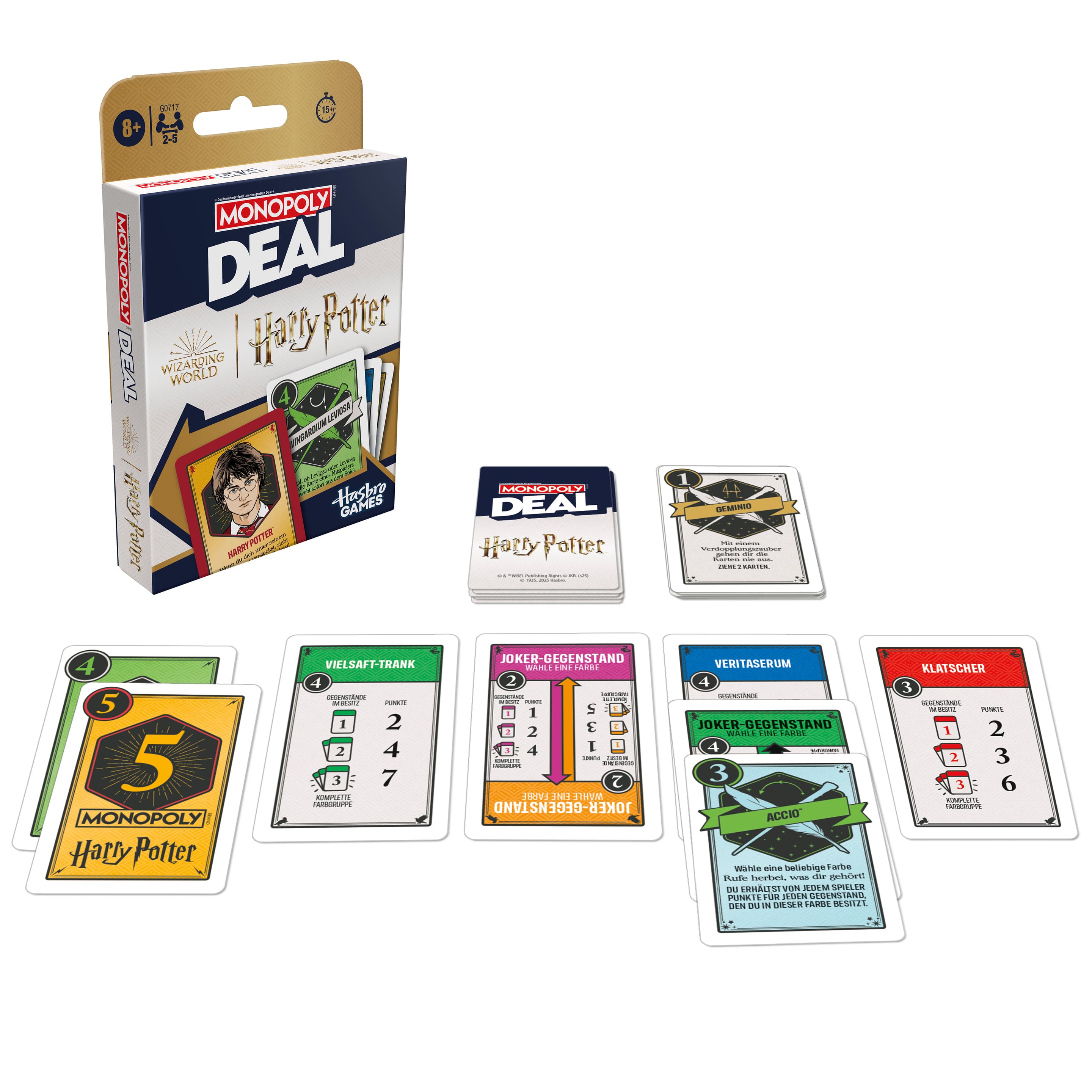INSPIRIERT VON HARRY POTTER: Das Monopoly Deal: HARRY POTTER Spiel kombiniert den schnellen Spaß des Monopoly Deal Spiels mit Figuren und Themen, die von der WIZARDING WORLD inspiriert sind