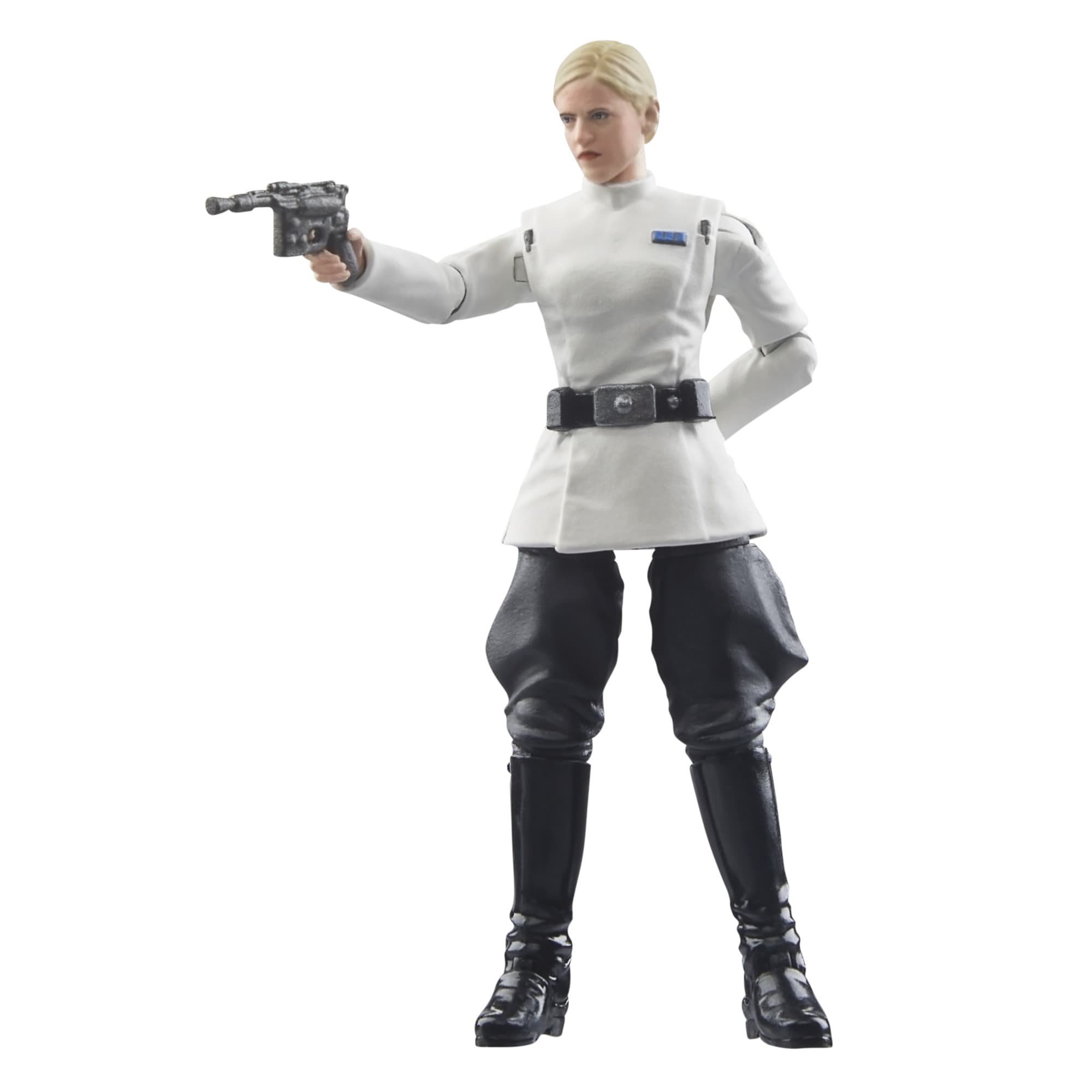 CHARAKTERISTISCHES ACCESSOIRE: Die Dedra Meero Figur kommt mit einem Blaster als Accessoire