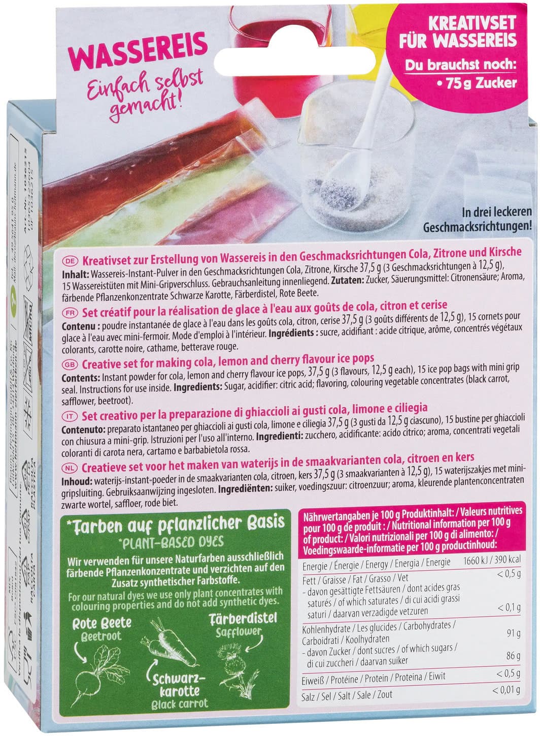Mit HEITMANN KREATIV Wassereis wird der Sommer bunt und erfrischend. In den Geschmacksrichtungen Zitrone, Cola und Kirsche entstehen bis zu 15 leckere Wassereis-Sticks ganz einfach zum Selbermachen. Anrühren, einfrieren und genießen – mit Farben zu 100% aus der Natur. Kreativer Eis-Spaß für die ganze Familie und perfekte Erfrischung an warmen Tagen.