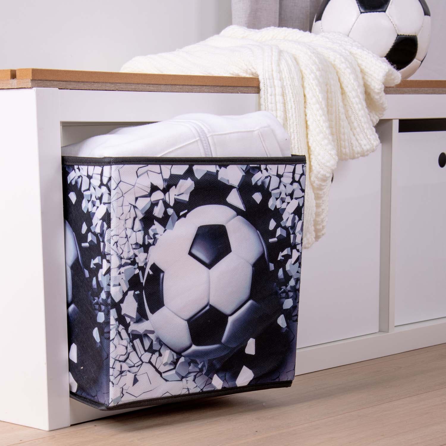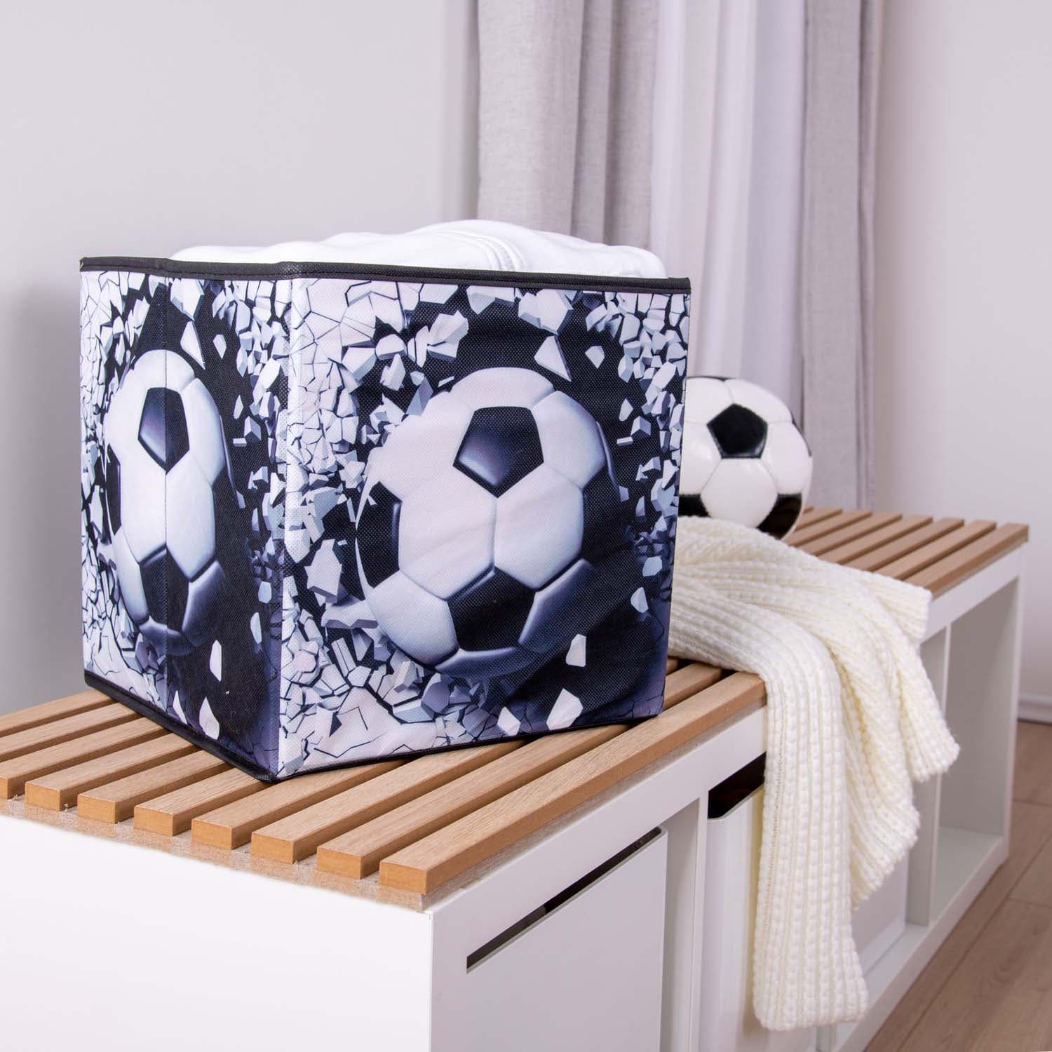 Fußball Storage Box 30×30×30 cm Praktische Aufbewahrungsbox im coolen Fußball-Design. Mit 30×30×30 cm passt sie in viele gängige Regalsysteme und bietet Platz für Spielzeug, Kleidung oder Fanartikel. Stabil, faltbar und mit Grifföffnungen ausgestattet – perfekt für alle kleinen und großen Fußballfans, die Ordnung mit Leidenschaft fürs Spiel verbinden möchten.