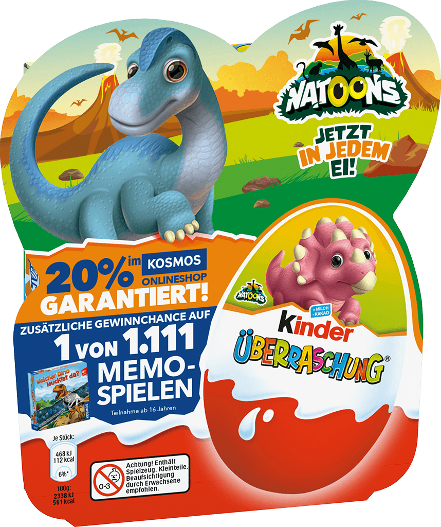 Das Überraschungsei mit seiner feinen Schicht aus leckerer Schokolade und einer vonüber 100 Überraschungen zaubert ein Strahlen in die Augen von Groß und Klein. Dies liegt an dem besonderen Erlebnis mit kinder Überraschung, das aus vielen Facetten besteht: Die Neugier beim Auspacken, die leckere Schokolade und die Freude auf das Spielzeug. Na, neugierig?