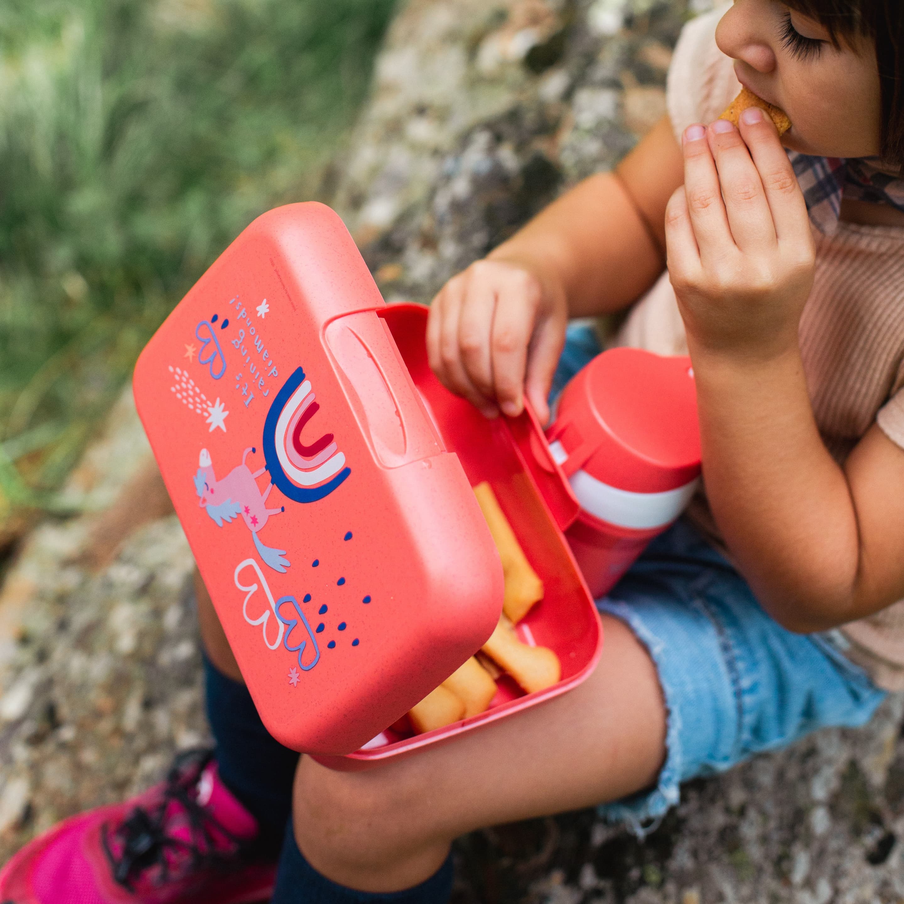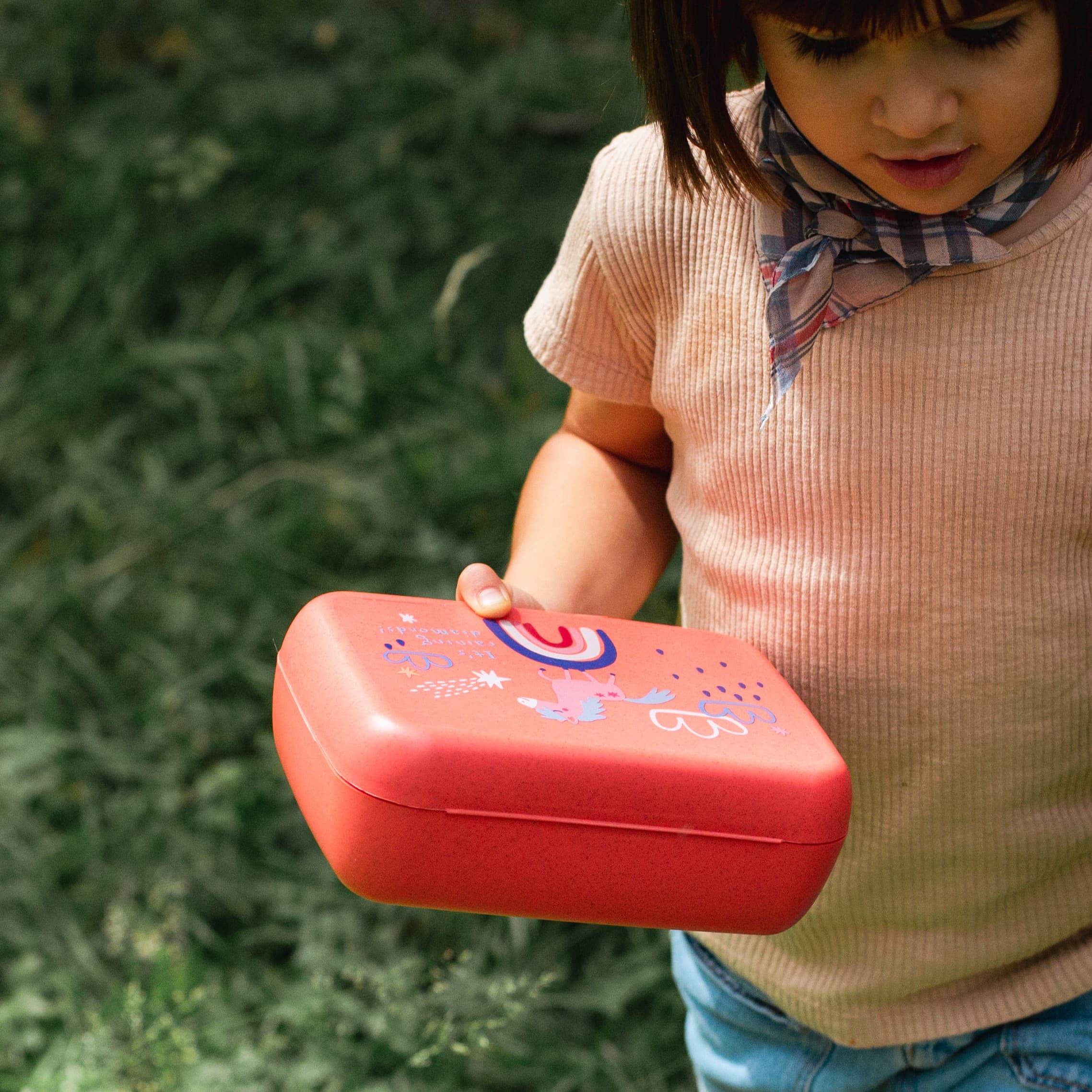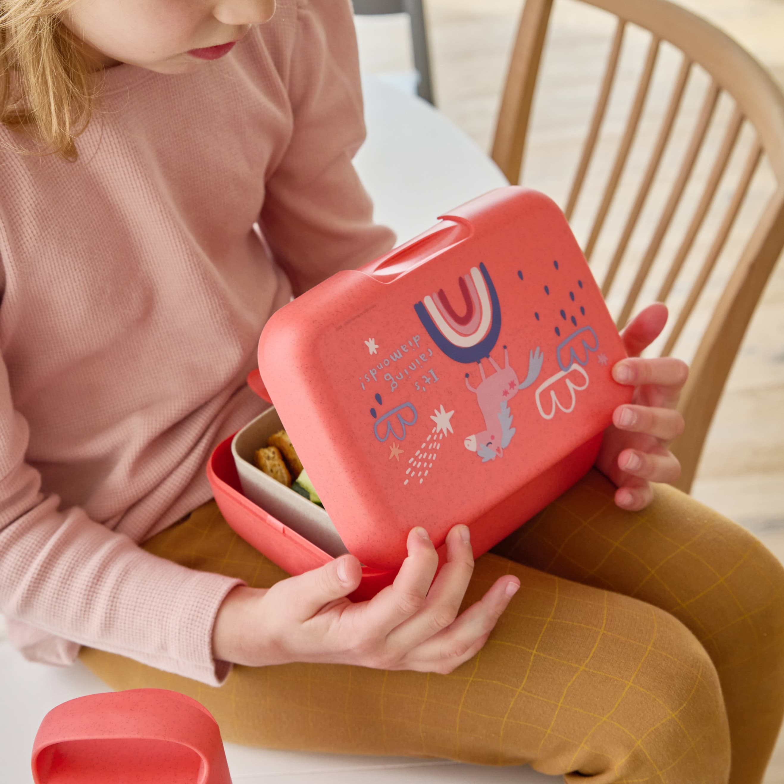 In der geräumigen Lunchbox sind Brote, Snacks, Obst und sogar belegte Brötchen frisch und appetitlich aufbewahrt. Der Clipverschluss ist in der Form versenkt, so dass sich die Dose beim Transport nicht versehentlich öffnen kann. Die abgerundete Form ist ein haptisches Vergnügen und vermeidet lästiges Anecken beim Transport in der Tasche, im Rucksack oder im Auto.