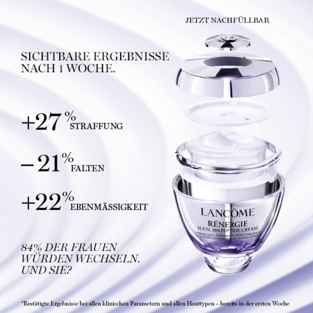 Die Rénergie H.P.N. 300-Peptide Cream von Lancôme ist eine Gesichtspflege, die als praktische Nachfüllung erhältlich ist. Sie wurde für die Anwendung bei reifer Haut konzipiert.