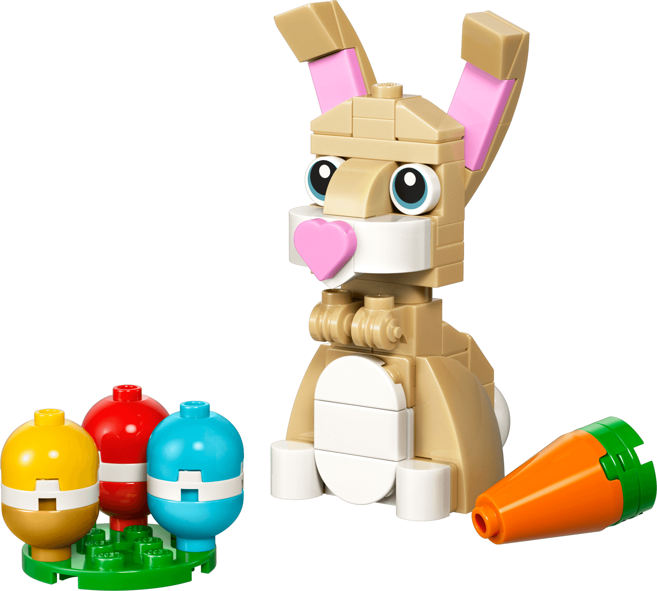 Kinder ab 6 Jahren werden an Ostern große Freude an diesem LEGO® Spielset haben. Ein Putziger Osterhase mit beweglichen langen Ohren sowie 3 bunte Ostereier und eine Karotte laden zum Spielen ein.