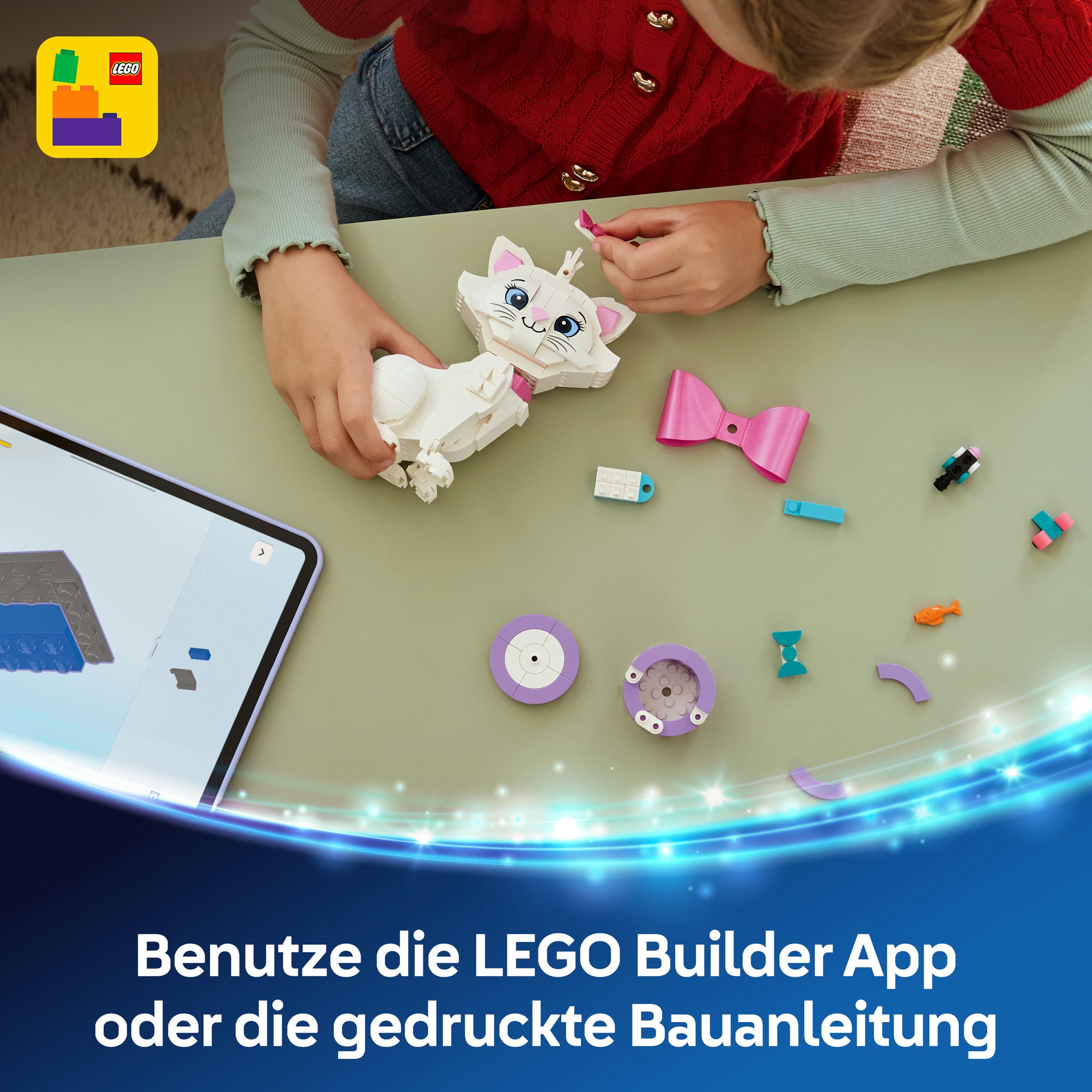 Mit 369 Teilen ist dieses Spielset ein wunderbares Geschenk für Kinder ab 7 Jahren, die den Film Aristocats lieben oder einfach Spaß an Tierfiguren, Disney Spielzeug und kreativem Bauen haben. Die LEGO Builder App begleitet den Aufbau mit 3D-Ansichten und digitalen Funktionen, für ein modernes und unterhaltsames Bauerlebnis mit Nostalgiecharme.