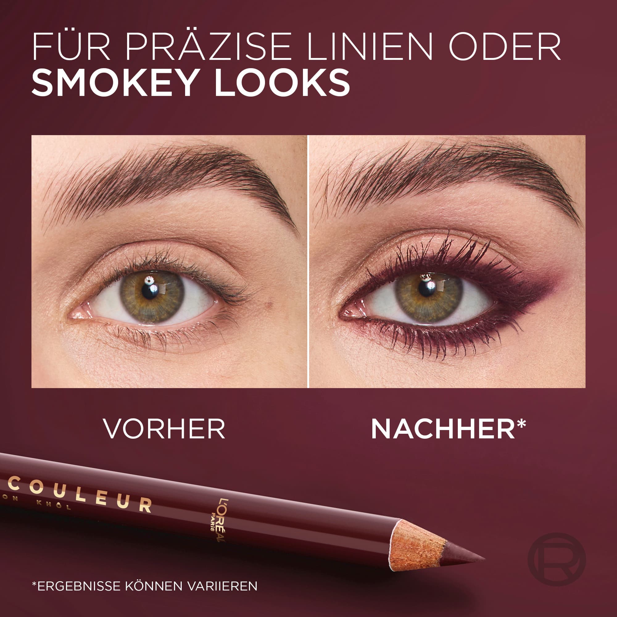 Definiere deine Augen mit dem L'Oréal Paris Haute Couleur Khol Eyeliner. Erlebe intensive Farbe und müheloses Verblenden. Die cremige Puder-Formel besitzt eine geschmeidige Textur und ist dank ihrer Anreicherung mit Shea Butter den ganzen Tag angenehm zu tragen. Für ein perfekt abgestimmtes Augen-Make-up lässt sich der Eyeliner ideal mit der neuen Panorama Chromatic Mascara kombinieren.