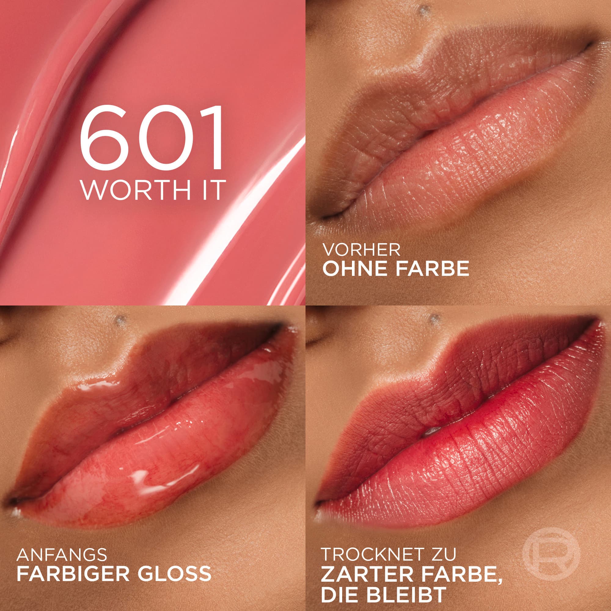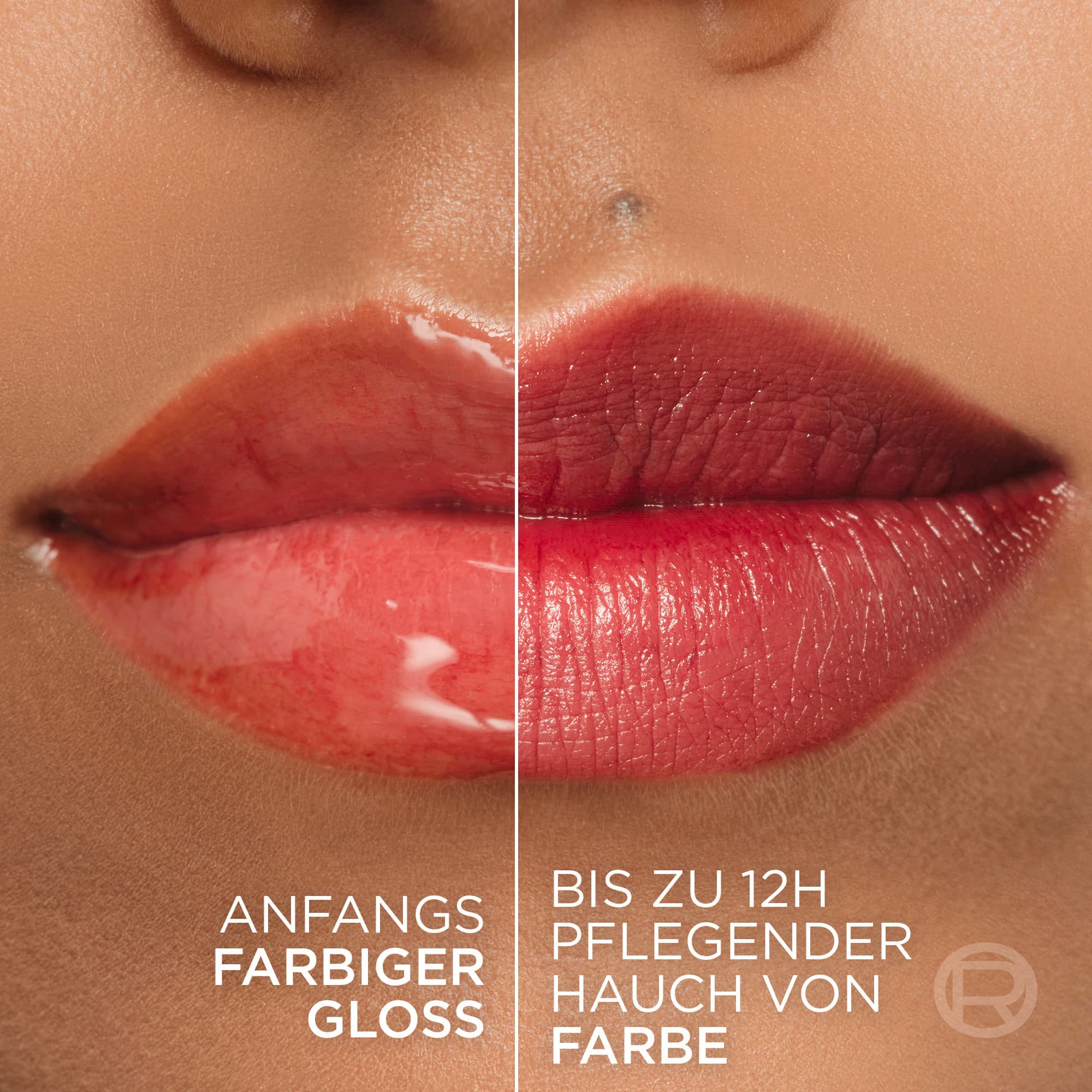 L'Oréal Paris Hyaluron Tint Lip Serum für 12 Stunden ultraleichte, leuchtende Farbe und 80 % sofortige Feuchtigkeit. Spendet Feuchtigkeit wie ein Serum und hält wie ein Lip Stain mit einer innovativen, mit Hyaluronsäure angereicherten Formel. Erst glänzend, verwandelt es sich nach dem Trocknen in ein mattes Finish. Dieses vielseitig einsetzbare Produkt kann sowohl auf Lippen und Wangen verwendet werden, für einen natürlich frischen Glow